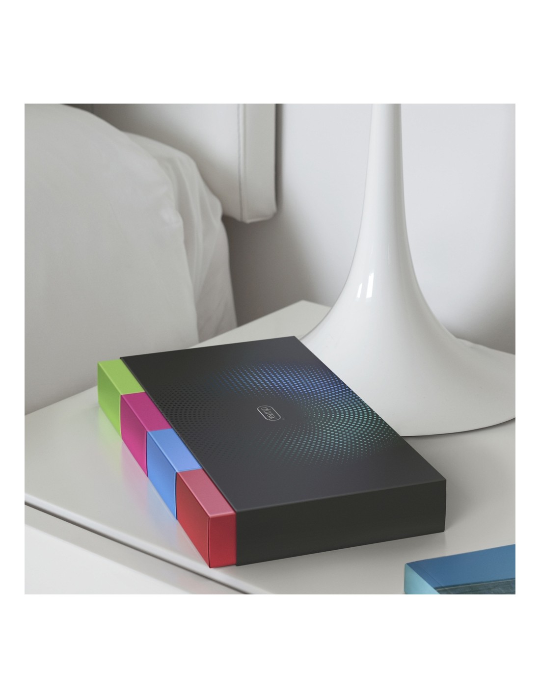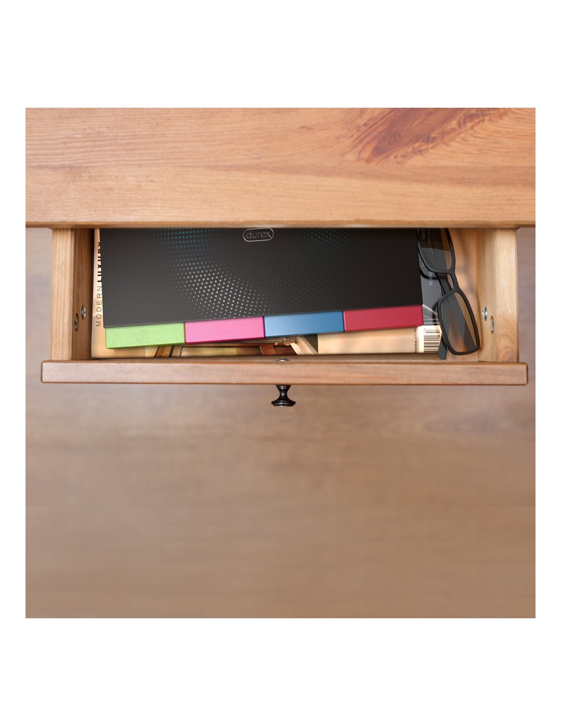 La confezione dal look premium e dal formato poco ingombrante con 4 cassetti ti aiuta nella scelta del profilattico ideale e ti permette di conservare in maniera divertente e discreta i tuoi preservativi.