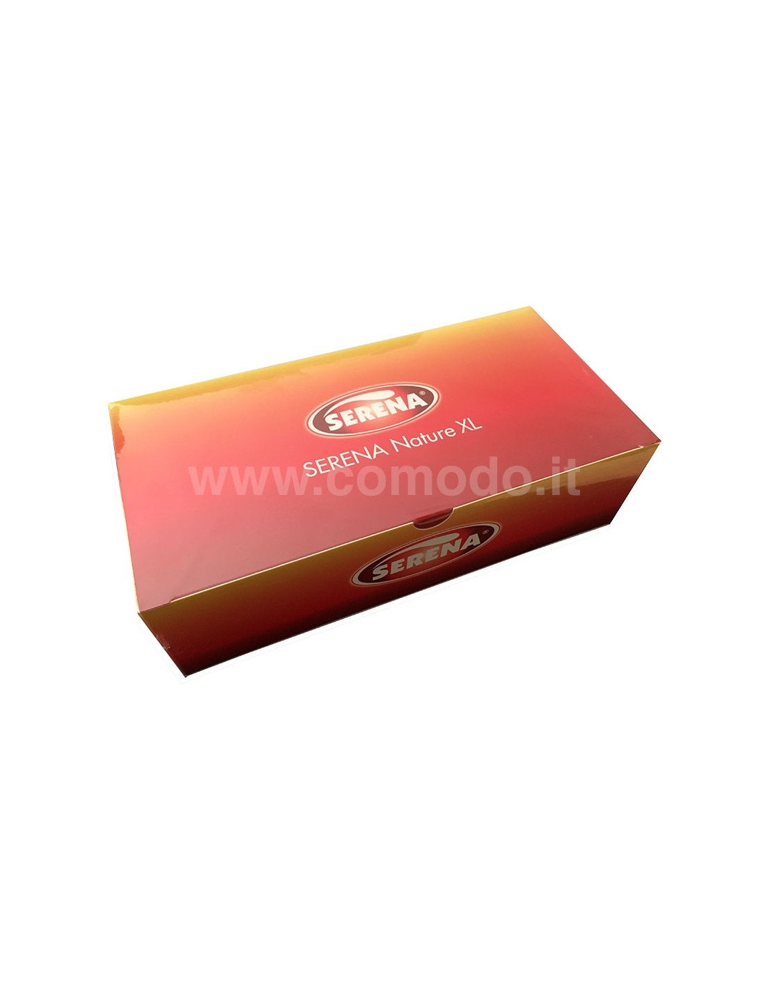 Serena nature XL è la variante extra large dei preservativi classici Serena. Con una larghezza nominale di 57 mm +-2 mm per chi possiede misure Extra e desidera un preservativo più grande e comodo.