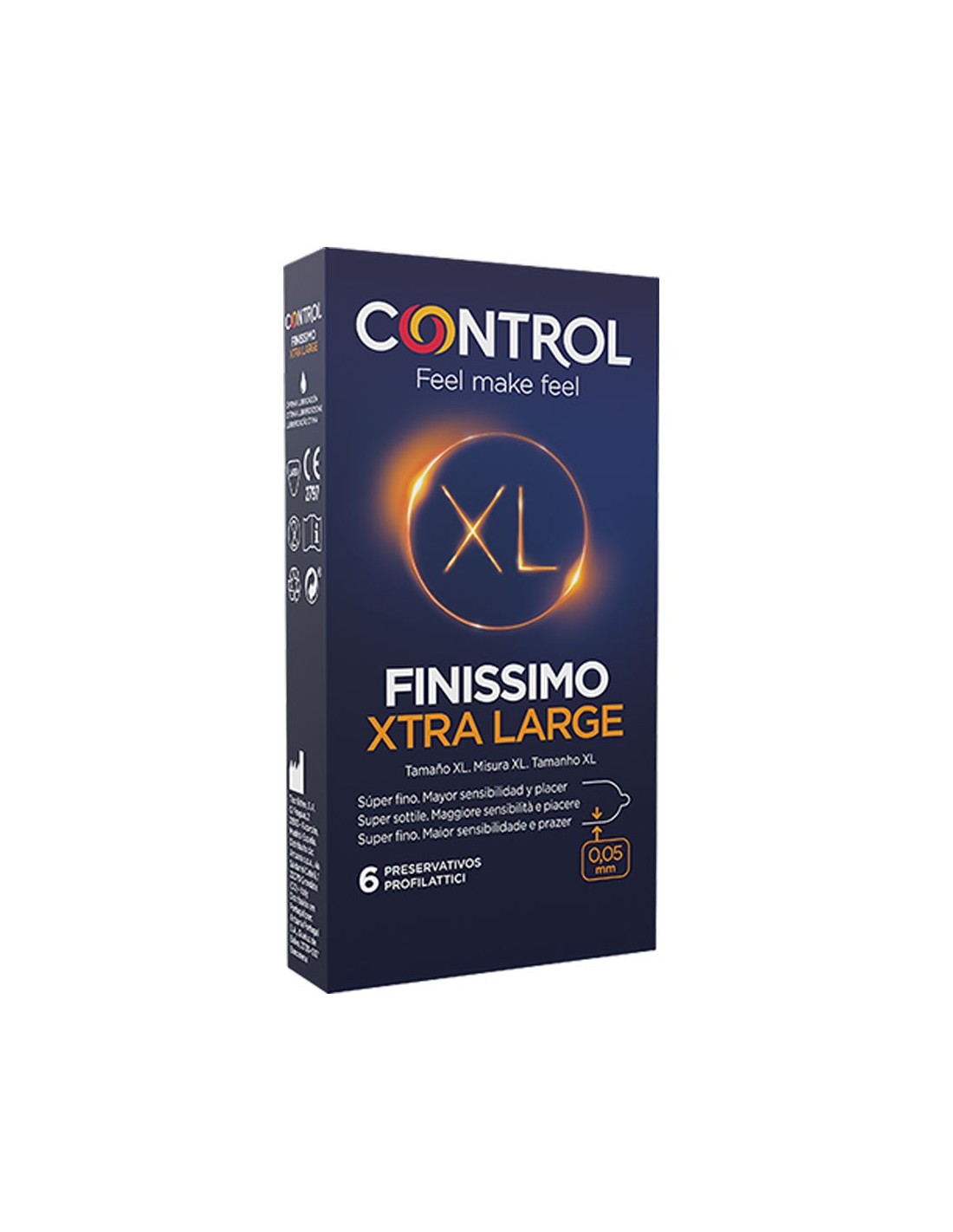 Preservativi Control Finissimo XL è un profilattico in lattice di gomma naturale della massima qualità, sottile, liscio, anatomico a lati non paralleli, trasparente, lubrificato e con serbatoio.