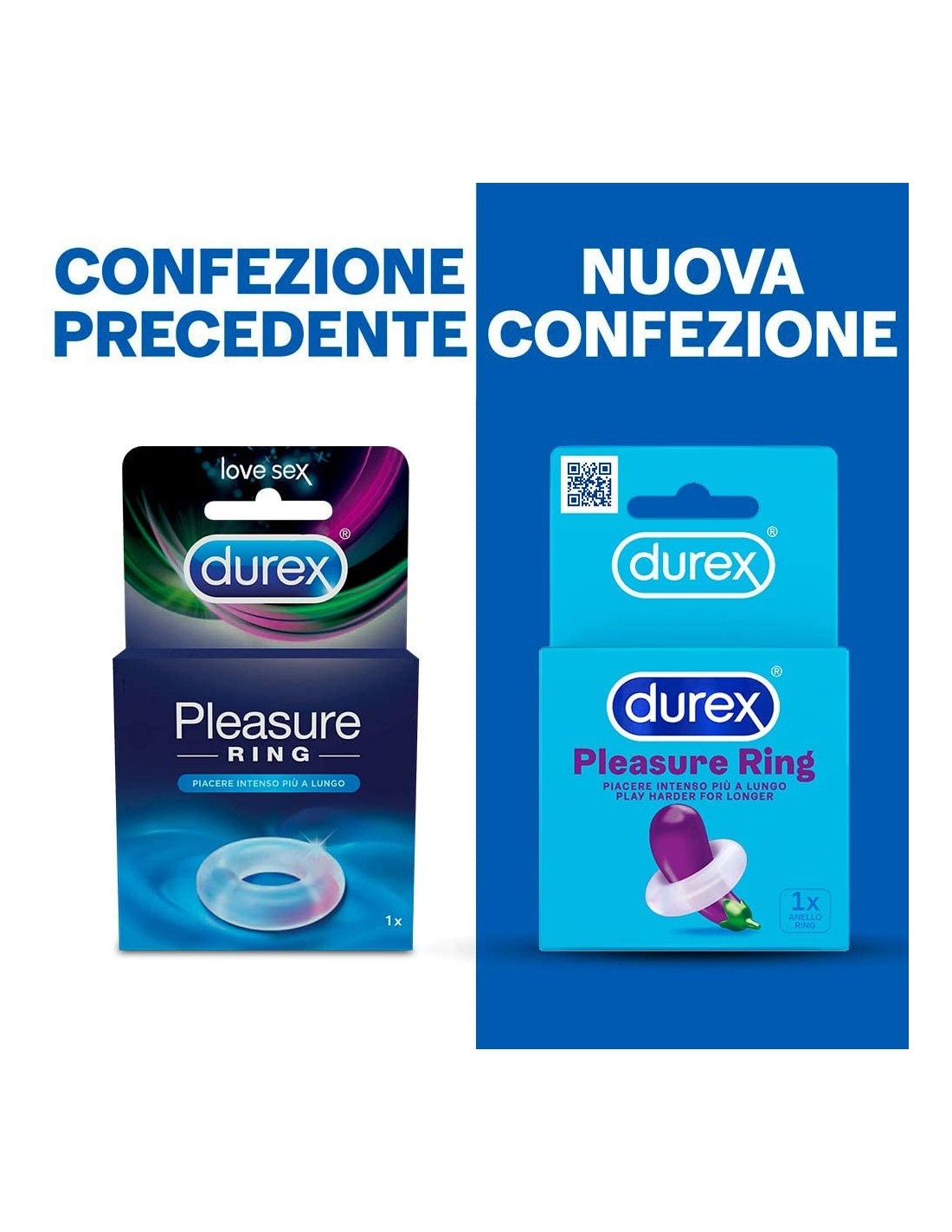 Il nuovo anello della Durex non vibra ma è elastico e discreto e può essere indossato sia con che senza il profilattico. La sua funzione è quella di, a pene eretto, concentrare l'afflusso di sangue verso il glande, migliorando l'erezione e rendere maggiormente turgido il pene. Basta infilarlo e posizionarlo alla base del pene per ottenere una confortevole vestibilità.