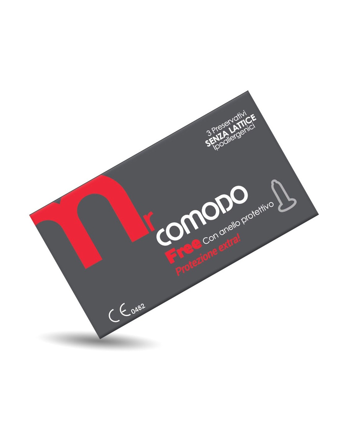 I profilattici mrComodo Free sono dotati di rondella protettiva che oltre a proteggere il pene, copre anche tutta la zona dei genitali creando una piccola barriera protettiva.