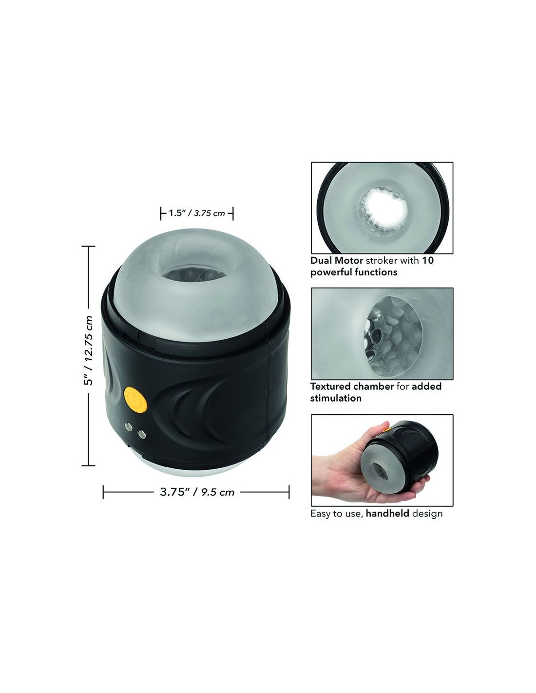 Il Boundless Dual Motor Stroker è un masturbatore impermeabile e vibrante, dotato di doppi motori e 10 diverse funzioni di vibrazione, pensato per regalarti un piacere senza fine. Il suo design audace a doppia entrata e la camera interna strutturata lo rendono perfetto per un’esperienza intensa ovunque tu sia, grazie alla sua praticità e portabilità. La morbida camera testurizzata avvolge con fermezza ad ogni movimento, mentre le varie modalità di vibrazione stimolano e ti accompagnano verso nuove vette di piacere. Personalizza il tuo momento di relax selezionando con un semplice tocco sul pulsante in silicone una delle 10 funzioni disponibili. Il manicotto a doppia apertura è facile da usare, pulire e non richiede particolari accorgimenti. Potrai godere fino a 150 minuti di vibrante piacere con una ricarica completa di sole 2 ore.