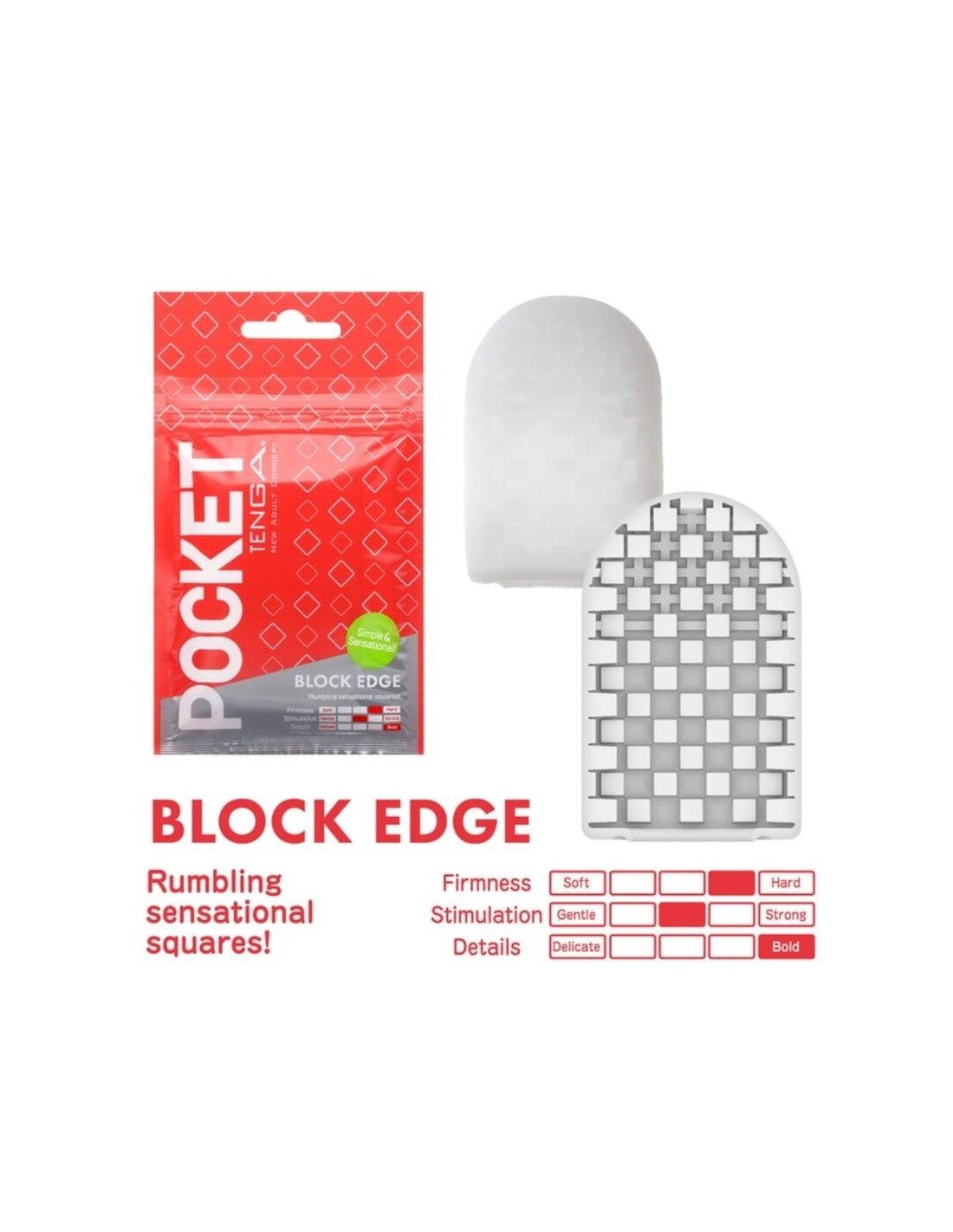 Il Tenga Pocket Block Edge si distingue per la sua texture densa di protuberanze, pensata per offrire una stimolazione intensa e coinvolgente. All’interno della confezione troverai anche una bustina di lubrificante per essere subito pronto a usarlo.