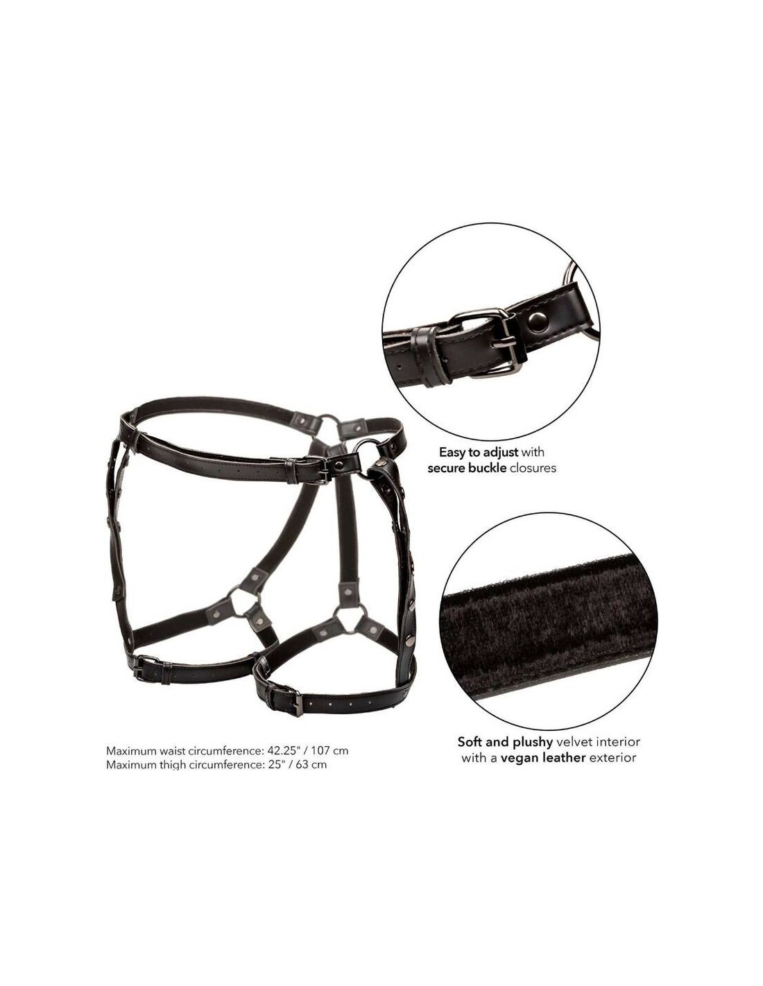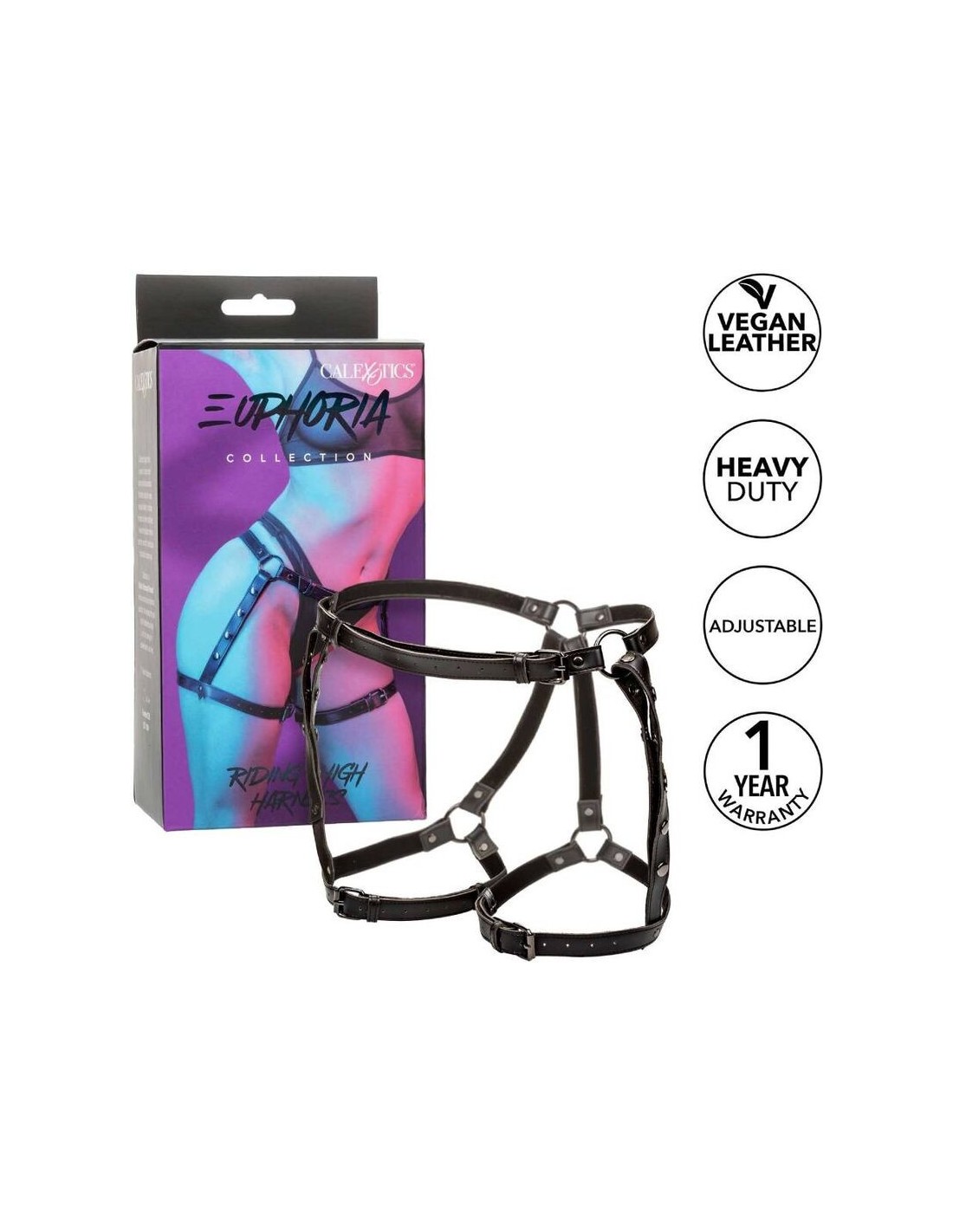 Scopri l'emozione con la pettorina da equitazione della collezione Euphoria, un accessorio premium pensato per momenti intensi e coinvolgenti. Perfetta sia per momenti intimi che per aggiungere un tocco di stile audace ai tuoi outfit, questa imbracatura in stile equitazione non passa inosservata. Le cinghie regolabili in vita e sulle cosce, dotate di chiusure sicure con fibbia, garantiscono una vestibilità comoda e personalizzabile, permettendoti di concentrarti completamente sul piacere e sull'eleganza. Il design moderno assicura resistenza, mentre l'interno in morbido velluto e l'esterno in pelle vegana offrono una sensazione di lusso e comfort. La doppia imbottitura e le cuciture rinforzate assicurano durata anche nelle tue avventure più intense. Arricchita da dettagli metallici che non si ossidano, questa imbracatura per coscia, adatta alla maggior parte delle taglie standard, aggiunge un tocco raffinato e sofisticato ai tuoi momenti speciali.