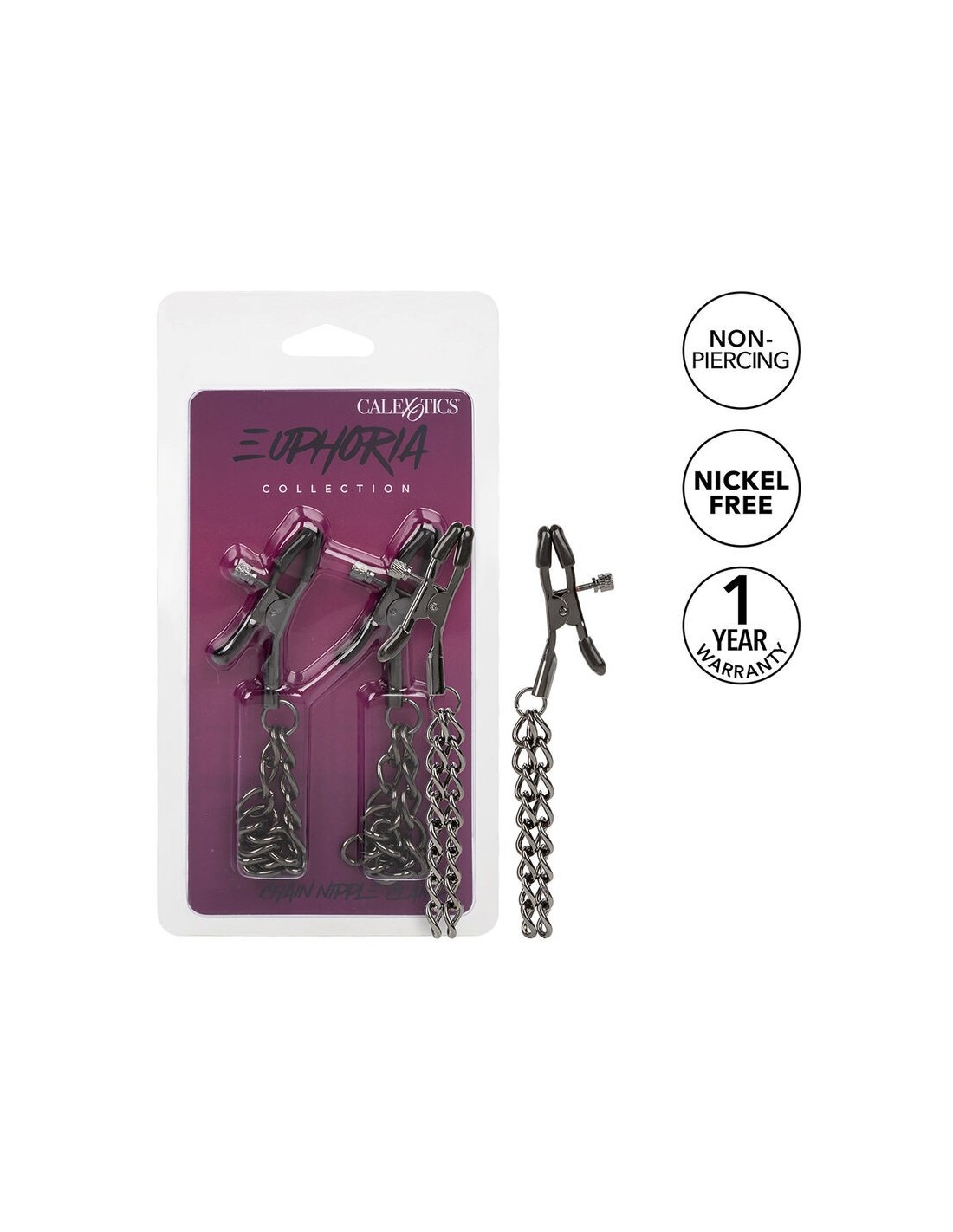 Scopri un viaggio di sensazioni con le pinze per capezzoli a catena della collezione Euphoria: un duo audace pensato per chi ama esplorare il piacere in modo intenso.