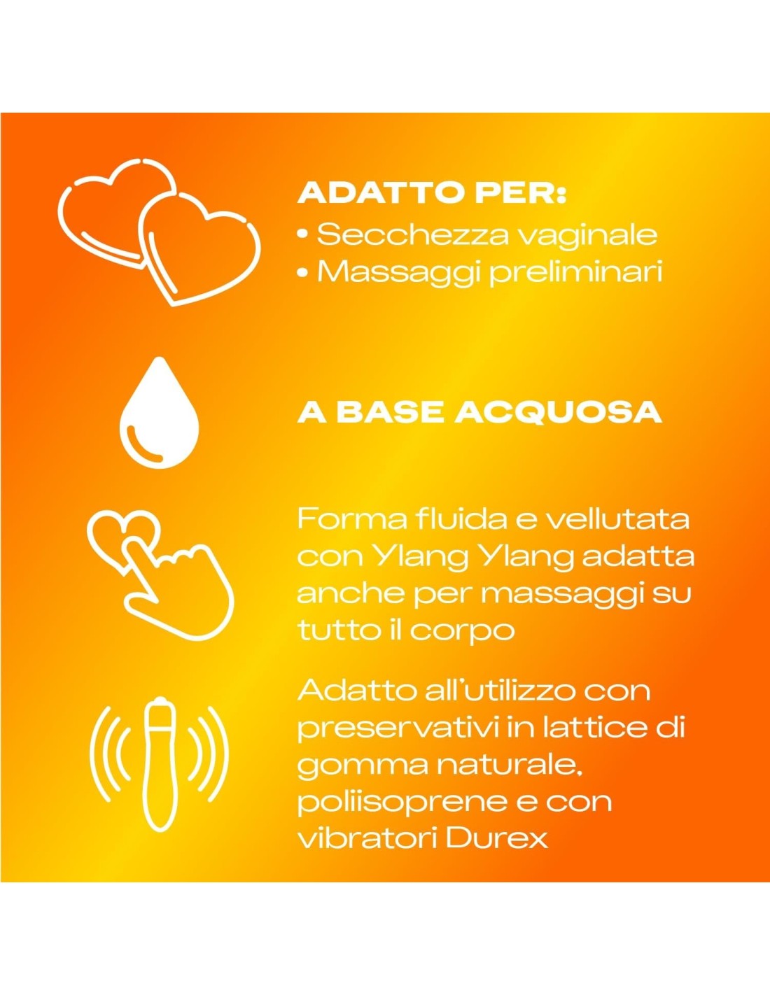 Il Gel Durex massage sensual 2in1 è arricchito con estratti di Ylang Ylang ed ha un profumo così delicato e rilassante che ti farà vivere l'eccitante esperienza dell'aromaterapia.