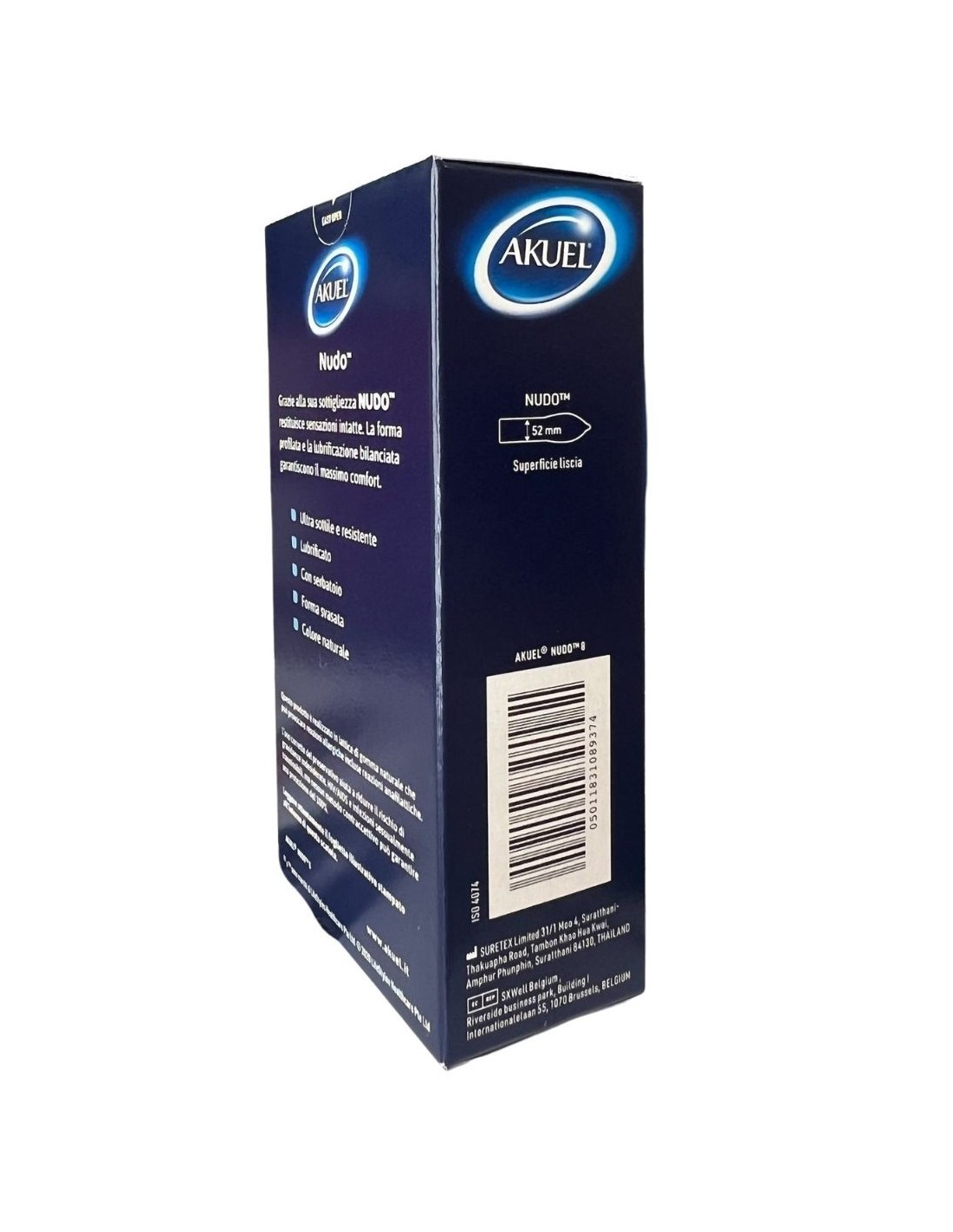 I preservativi Akuel Nudo hanno una larghezza nominale di 53 mm, con serbatoio e lubrificati per agevolare la penetrazione e migliorare le prestazioni.