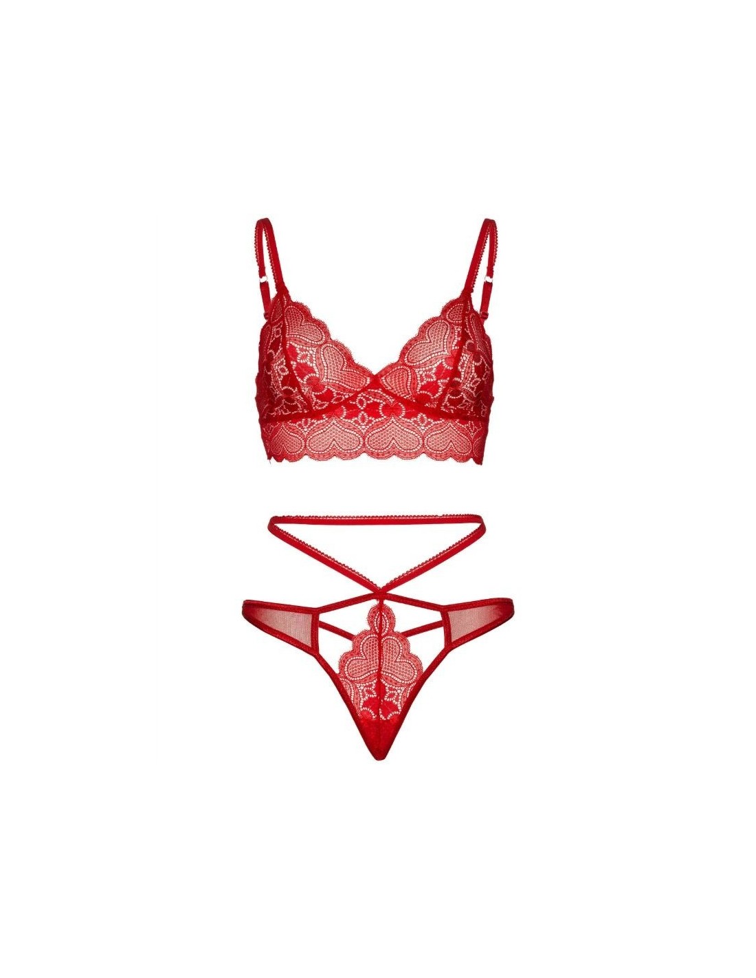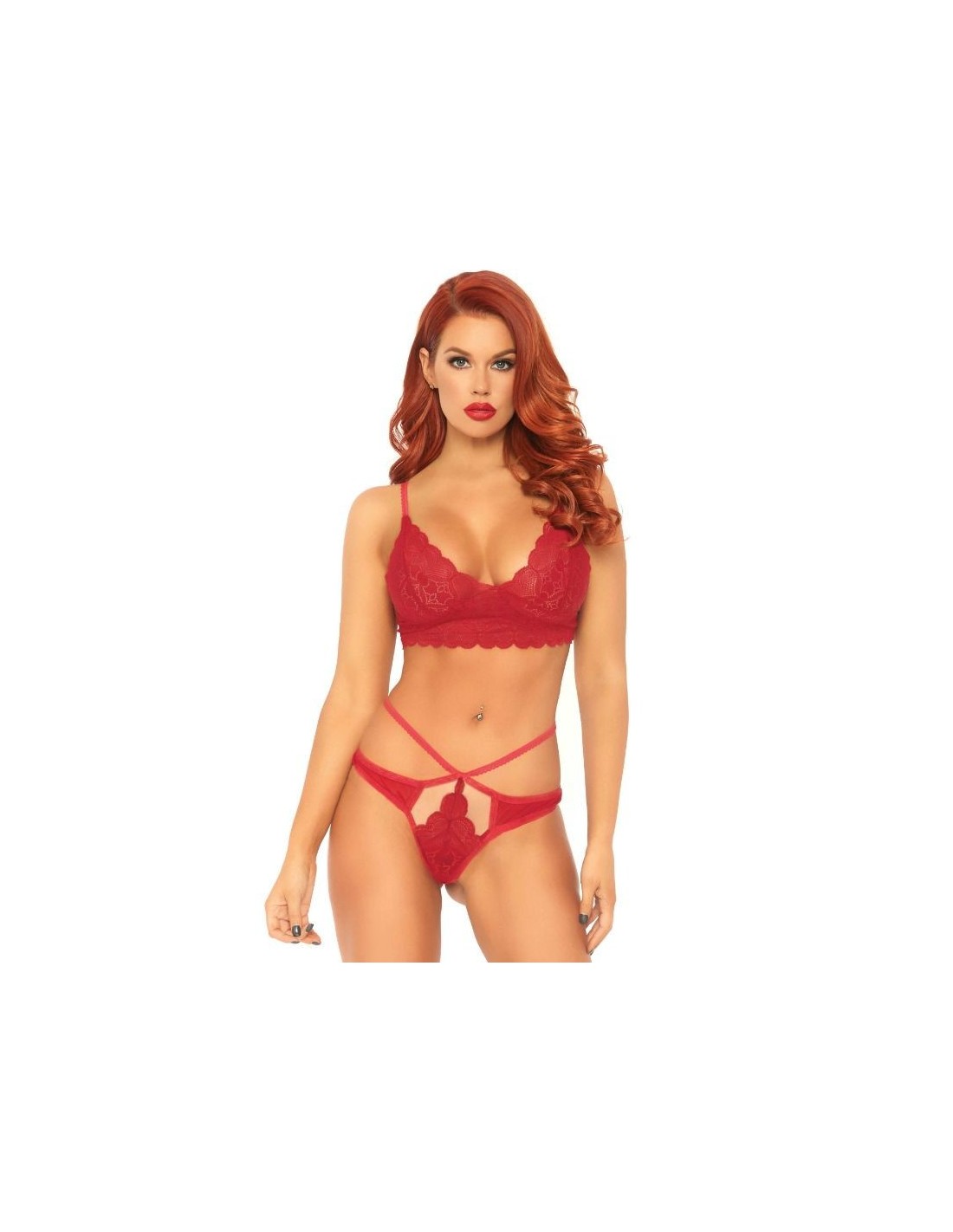 Scopri il fascino irresistibile di questo set composto da 2 pezzi: una bralette in pizzo con scollo a cuore e un perizoma ritagliato con spalline abbinate. Lasciati avvolgere dalla sensualità firmata Leg Avenue, la tua marca di lingerie preferita.