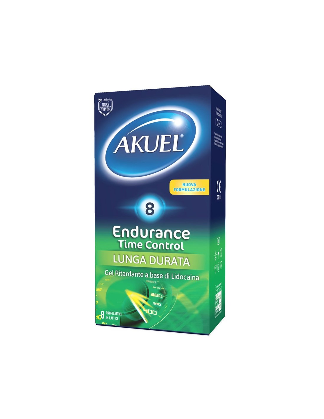 Akuel Endurance Time Control è il preservativo Akuel ritardante con una nuova formulazione in gel del lubrificante a a base di cloridrato di lidocaina, un anestetico locale che diminuirà la sensibilità del glande permettendo cosi di prolungare il rapporto l'eccitazione sessuale maschile.