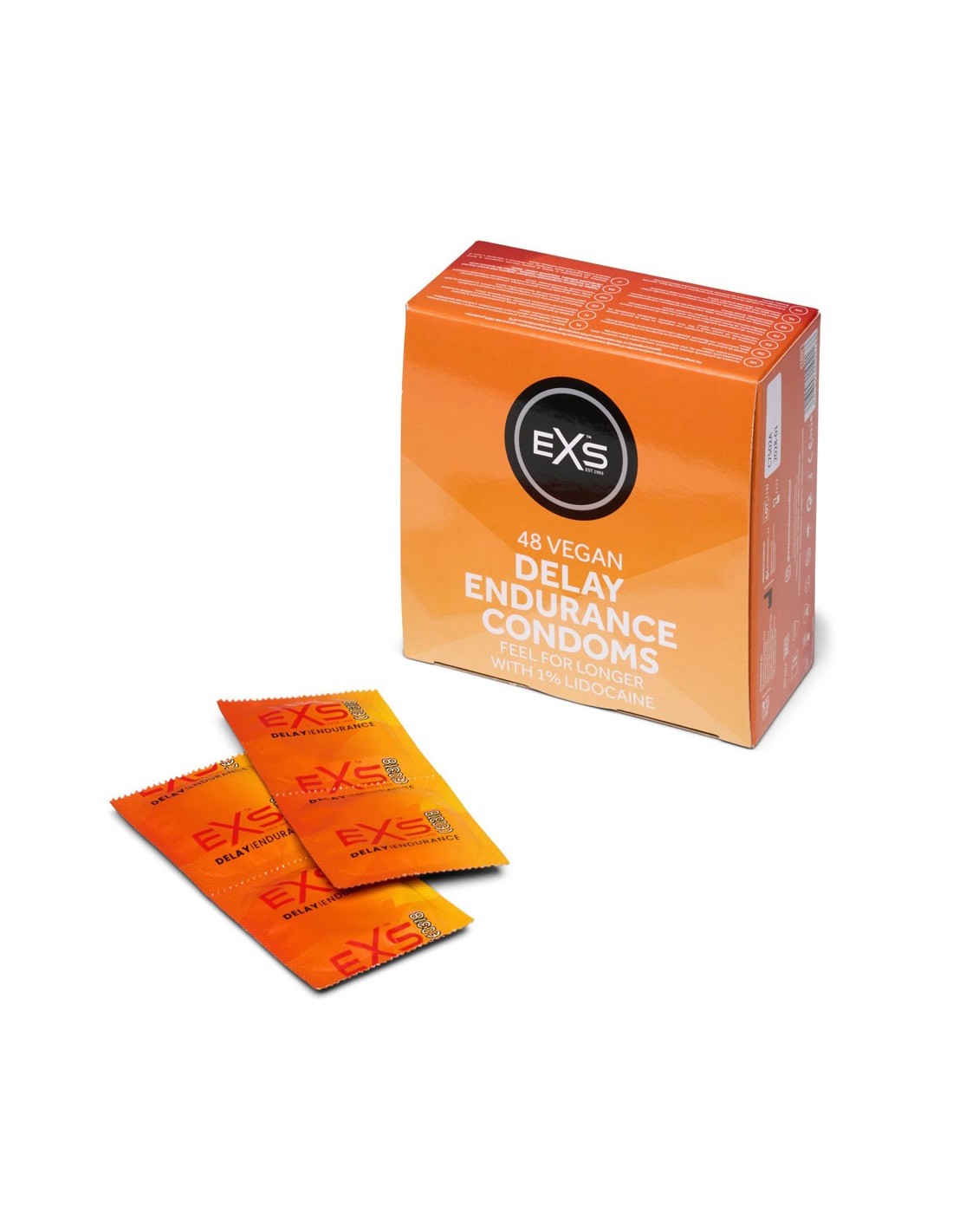 I preservativi EXS Delay Endurance Condoms sono preservativi progettati per aiutare a ritardare l’eiaculazione e prolungare il rapporto, offrendo al tempo stesso elevati standard di sicurezza e comfort. Grazie al lubrificante interno con lidocaina, questi preservativi riducono leggermente la sensibilità per favorire una maggiore durata durante il rapporto, senza compromettere il piacere.