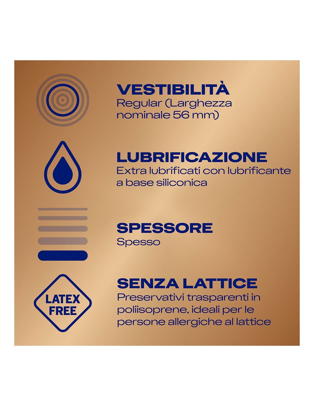 Realizzati con un materiale sintetico tecnologicamente avanzato, registrato e di esclusiva proprietà di Durex. La selettività nella scelta del materiale e del processo di fabbricazione portano all'ottenimento di un prodotto:
