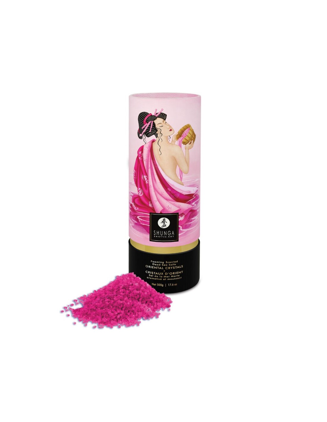 Versate una piccola quantità di cristalli sotto l'acqua calda del bagno per diffondere un profumo inebriante e tingere l'acqua di una delicata schiuma cremosa. Godetevi questo momento in totale privacy o condividetelo con il vostro partner per rendere l'atmosfera ancora più intima e sensuale.