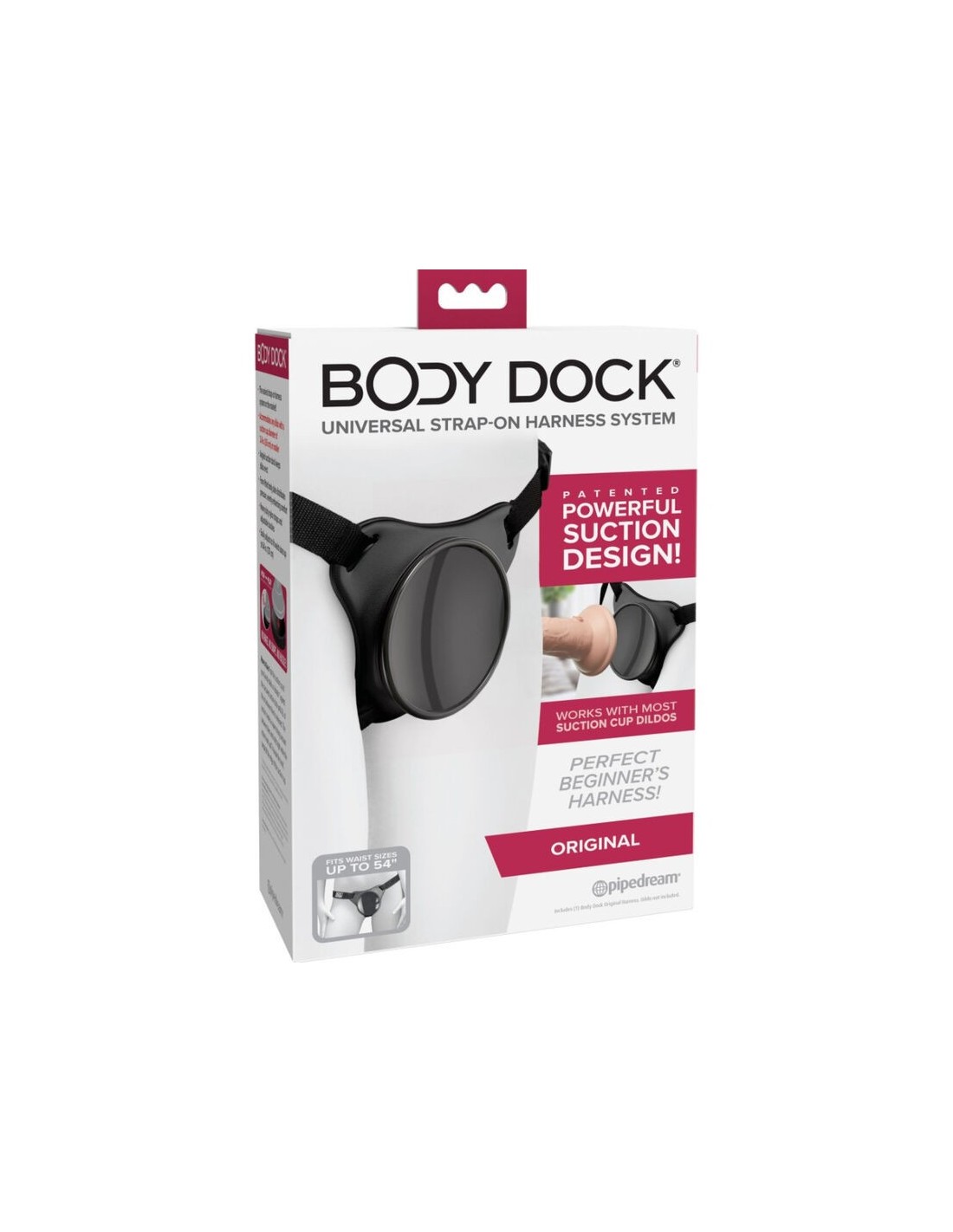 Il sistema brevettato Body Dock Universal Strap-On Harness porta il gioco strap-on a un livello completamente nuovo! Basta fissare la ventosa del tuo dildo o vibratore preferito alla piastra di aggancio e regolare facilmente le cinghie in nylon, adatte alla maggior parte delle taglie e corporature. Niente anelli, niente scatti, nessun problema! Inoltre, funziona con la maggior parte dei dildo presenti sul mercato, inclusi molti che potresti già avere. Cambiare il tuo accessorio strap-on preferito non è mai stato così semplice e veloce!