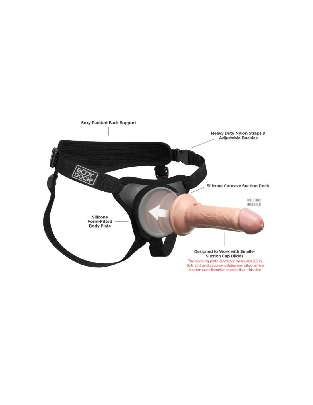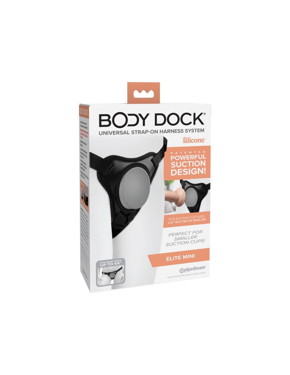 Il Body Dock Elite Mini rivoluziona il mondo del gioco strap-on, portandolo a un livello completamente nuovo! Dotato di una piastra di aggancio in silicone di alta qualità, studiata per aderire perfettamente al corpo, questo modello include fibbie laterali regolabili e un supporto posteriore imbottito per il massimo comfort. Progettato appositamente per dildo con ventose più piccole, l'Elite Mini offre una vestibilità più compatta e pratica. Cambiare il tuo accessorio strap-on preferito non è mai stato così semplice e veloce: basta fissare la ventosa del dildo o vibratore alla piastra di aggancio, mentre le cinghie in nylon si regolano facilmente per adattarsi a diverse taglie e corporature. Inoltre, questo sistema è compatibile con la maggior parte dei dildo sul mercato, inclusi quelli che potresti già avere. Niente anelli, niente scatti, nessun problema!