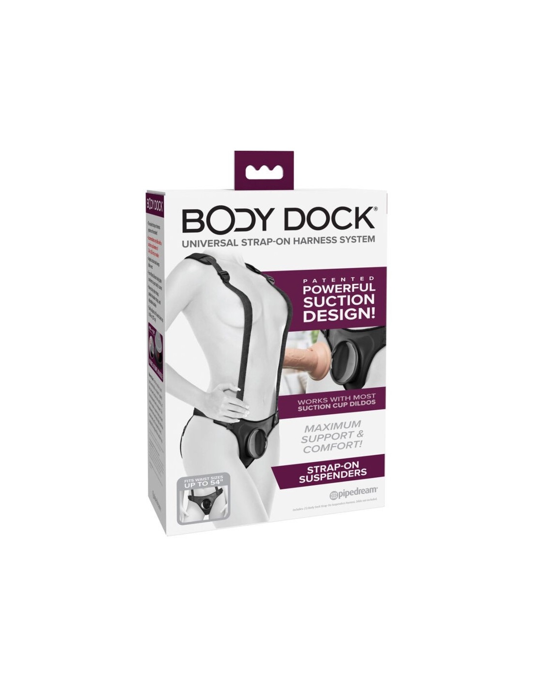 Le bretelle brevettate Body Dock Strap-On portano il gioco strap-on a un livello completamente nuovo! Non solo sono eleganti, ma offrono anche il massimo supporto e comfort grazie alla piastra corporea imbottita, alle bretelle rimovibili, alle fibbie regolabili con sgancio laterale e agli spallacci staccabili. Cambiare il tuo accessorio strap-on preferito non è mai stato così semplice e veloce! Basta agganciare la ventosa del dildo o vibratore che ami alla piastra di aggancio, mentre le cinghie in nylon si regolano facilmente per adattarsi alla maggior parte delle taglie e corporature. Soprattutto, funziona con la maggior parte dei dildo oggi disponibili sul mercato, inclusi molti che potresti già possedere. Dimentica anelli e scatti, qui non servono!