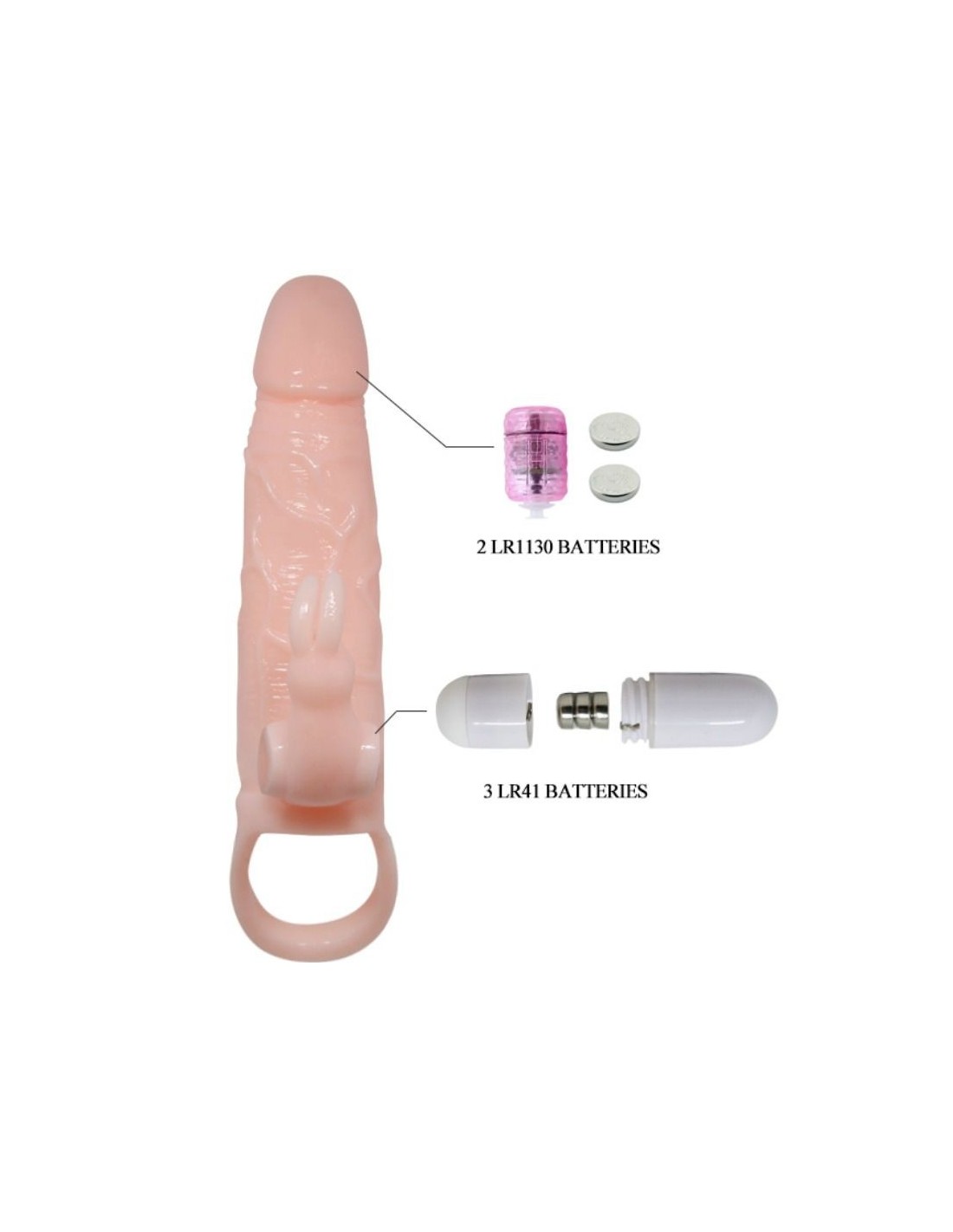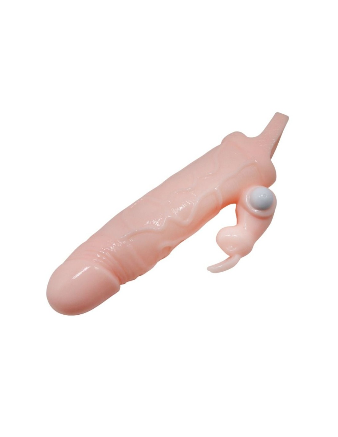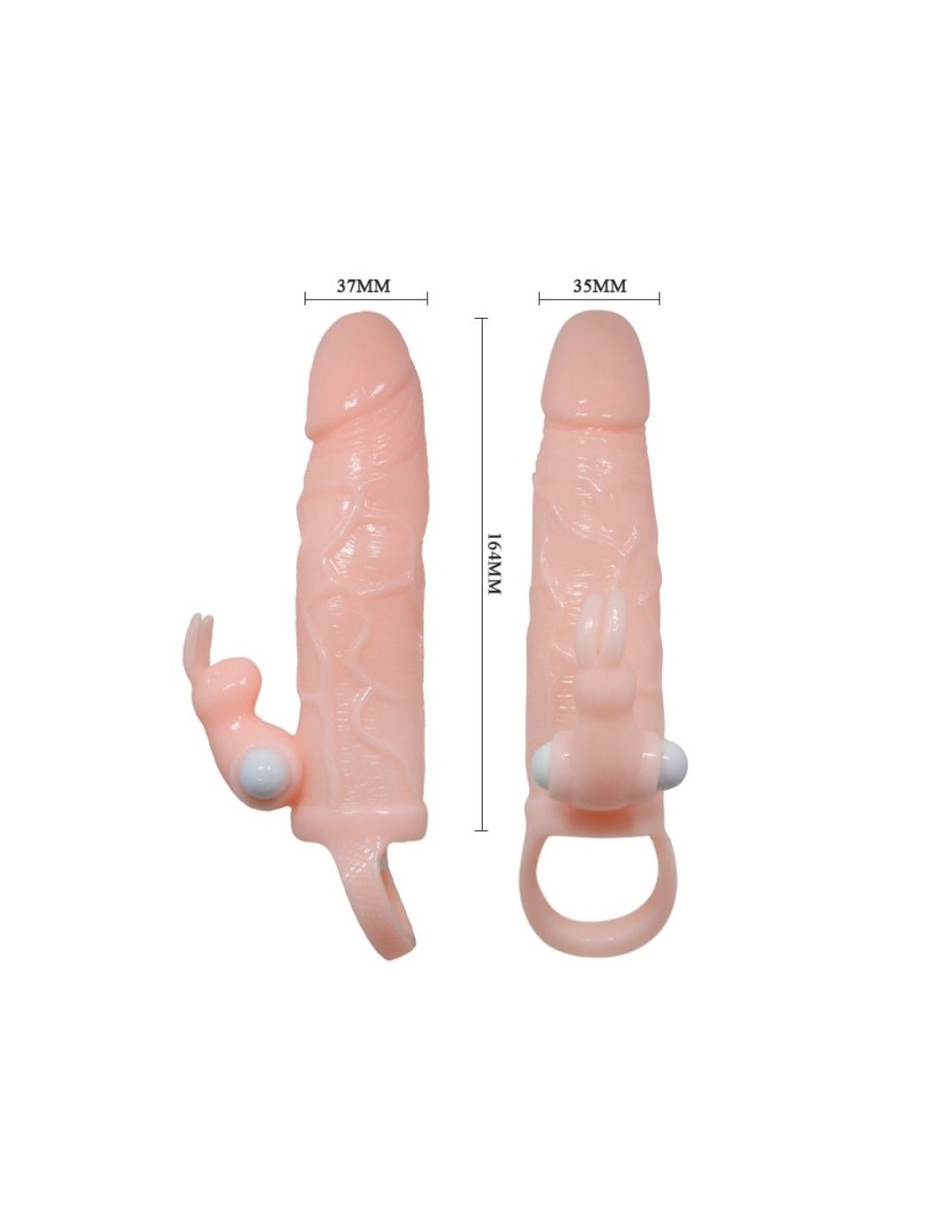 Prolunga il piacere e rendi i tuoi momenti intimi ancora più coinvolgenti con questa copertura per pene dal design realistico. Ricca di dettagli, è arricchita da un coniglio vibrante, pensato per stimolare il clitoride della tua partner, e da un potente bullet posizionato sulla punta per offrire una stimolazione intensa e sorprendente!