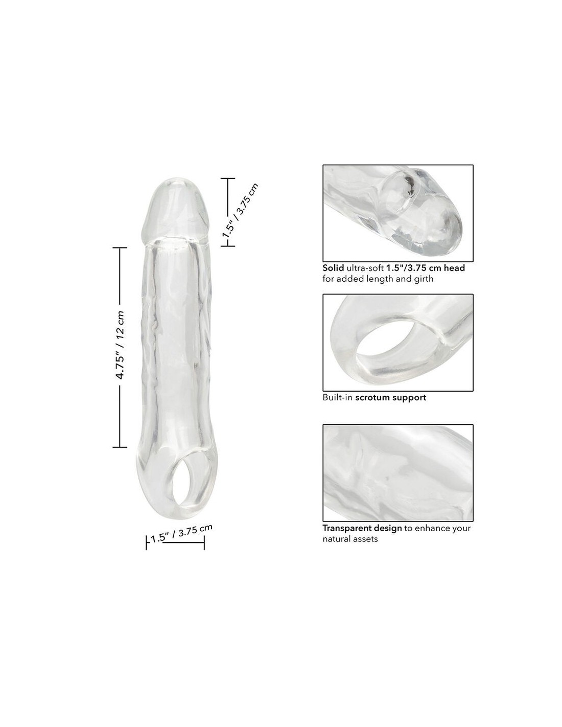 Scopri un piacere superiore con l'estensione trasparente Performance Maxx da 6,5". Questo accessorio non solo aumenta le dimensioni, ma ti dona anche una maggiore sicurezza, aggiungendo lunghezza e spessore. La testa solida ultra morbida di 1,5 pollici (3,75 cm) offre una sensazione realistica, mentre il design trasparente stimola visivamente, valorizzando i tuoi attributi naturali. Il tubo cavo dal design realistico garantisce comfort, grazie anche alla comoda cinghia scrotale integrata che assicura stabilità durante l'uso. Realizzata con materiali sicuri per il corpo, senza profumo e senza ftalati, questa estensione ti offre la massima tranquillità. Che tu voglia aggiungere un tocco di eccitazione ai tuoi momenti intimi o esplorare nuove sensazioni, la Performance Maxx Clear Extension 6.5" è pensata per migliorare ogni esperienza e portarti a nuovi livelli di piacere.