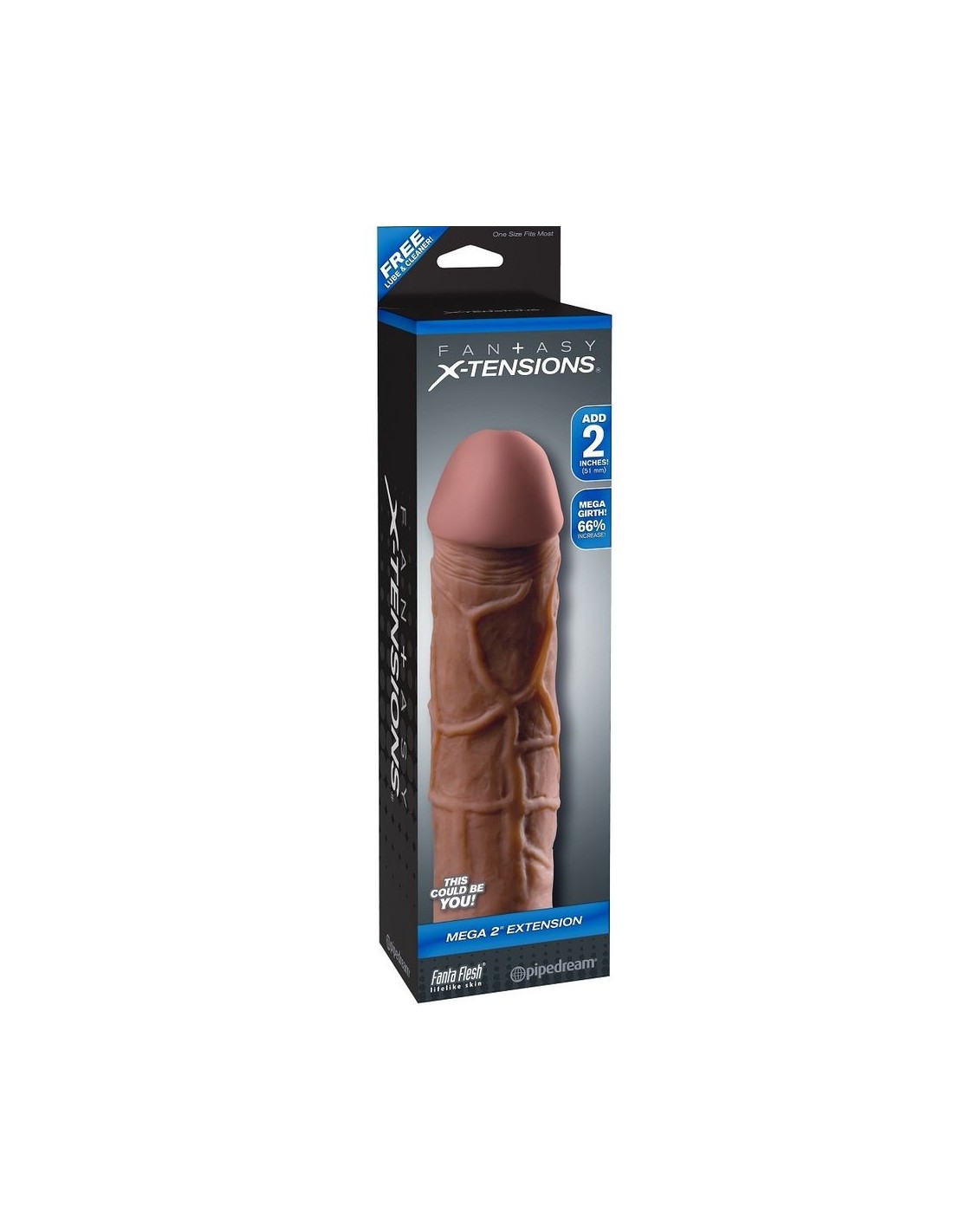 L'estensione Mega da 2" è completamente personalizzabile: può essere facilmente tagliata alla base per una vestibilità perfetta. Grazie alla sua alta elasticità, si adatta alla maggior parte delle misure ed è abbastanza aderente da aiutarti a durare più a lungo. Il tuo partner potrà godere di una penetrazione più profonda con l'estensione da 2" sulla punta, mentre l'asta ultra-realistica aumenta la circonferenza del 66% su tutta la superficie. Realizzato in morbido materiale Fanta Flesh, che sembra una seconda pelle, ti offre lunghezza, spessore e la sicurezza necessaria per soddisfare al meglio il tuo amante.