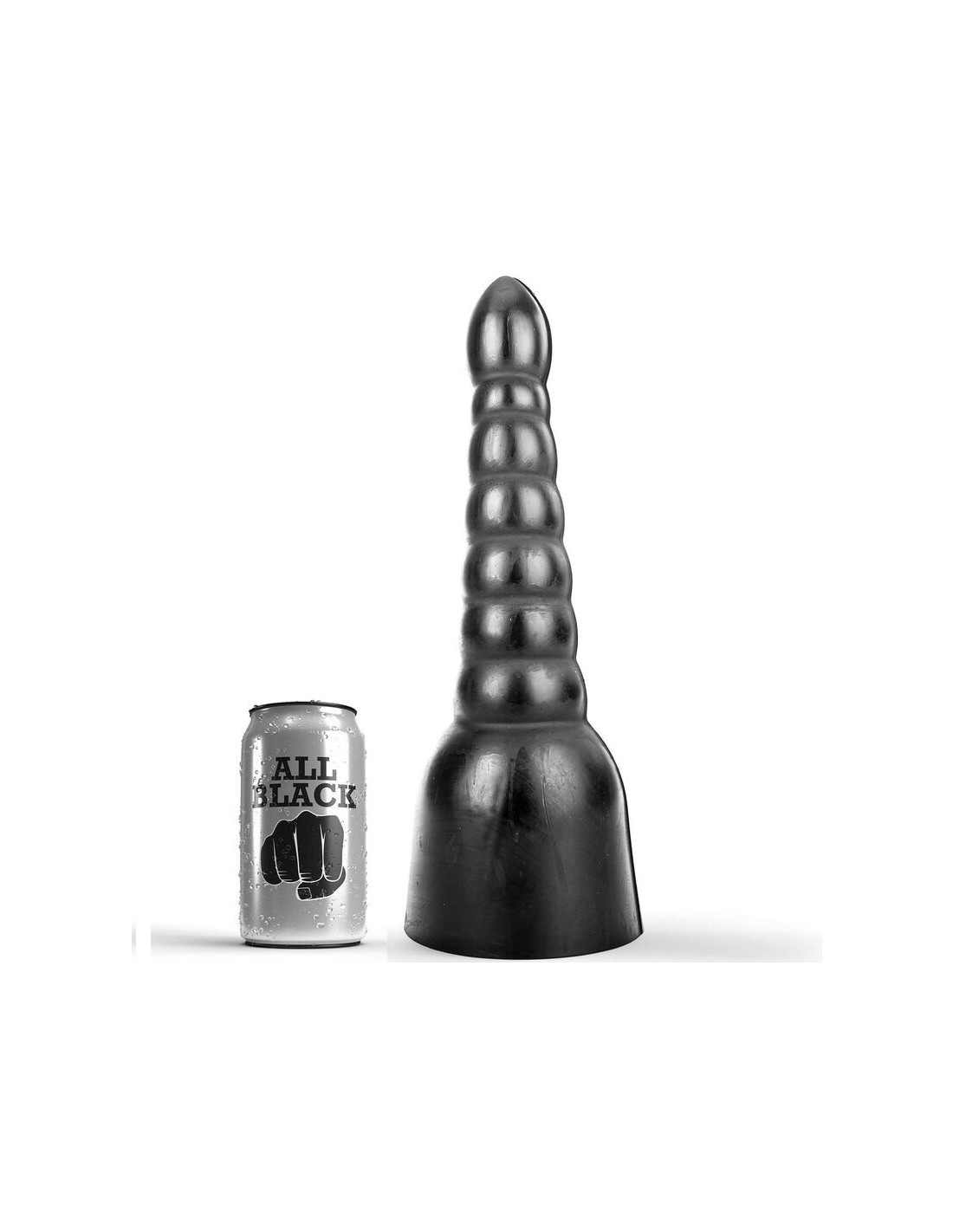 Questo esclusivo dildo All Black presenta una base ampia che si assottiglia verso l'alto, con ogni strato dotato di scanalature speciali per una stimolazione ancora più intensa.