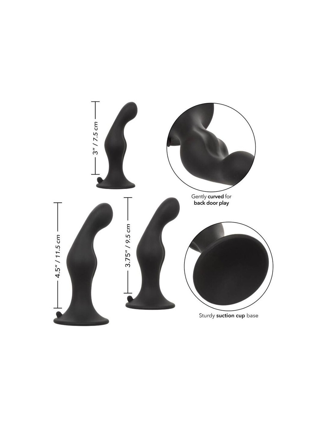 Scopri un nuovo livello di piacere anale con il kit di plug in silicone dall’ondulazione perfetta. Questo set comprende 3 plug anali di dimensioni progressive, leggermente curvati e dotati di basi a ventosa, pensati per regalarti sensazioni intense e indimenticabili. Il design naturalmente curvo è studiato per stimolare i punti giusti, assicurando comfort e piacere durante ogni utilizzo. Ogni plug aumenta gradualmente in lunghezza e circonferenza, permettendoti di esplorare il piacere a diversi livelli, mentre la base a ventosa garantisce un fissaggio stabile, un inserimento semplice e una rimozione delicata. Realizzate in silicone satinato liscio e privo di giunture, le sonde sono flessibili, sicure per il corpo, inodore e prive di ftalati, per preservare la salute e il benessere delle zone più sensibili.