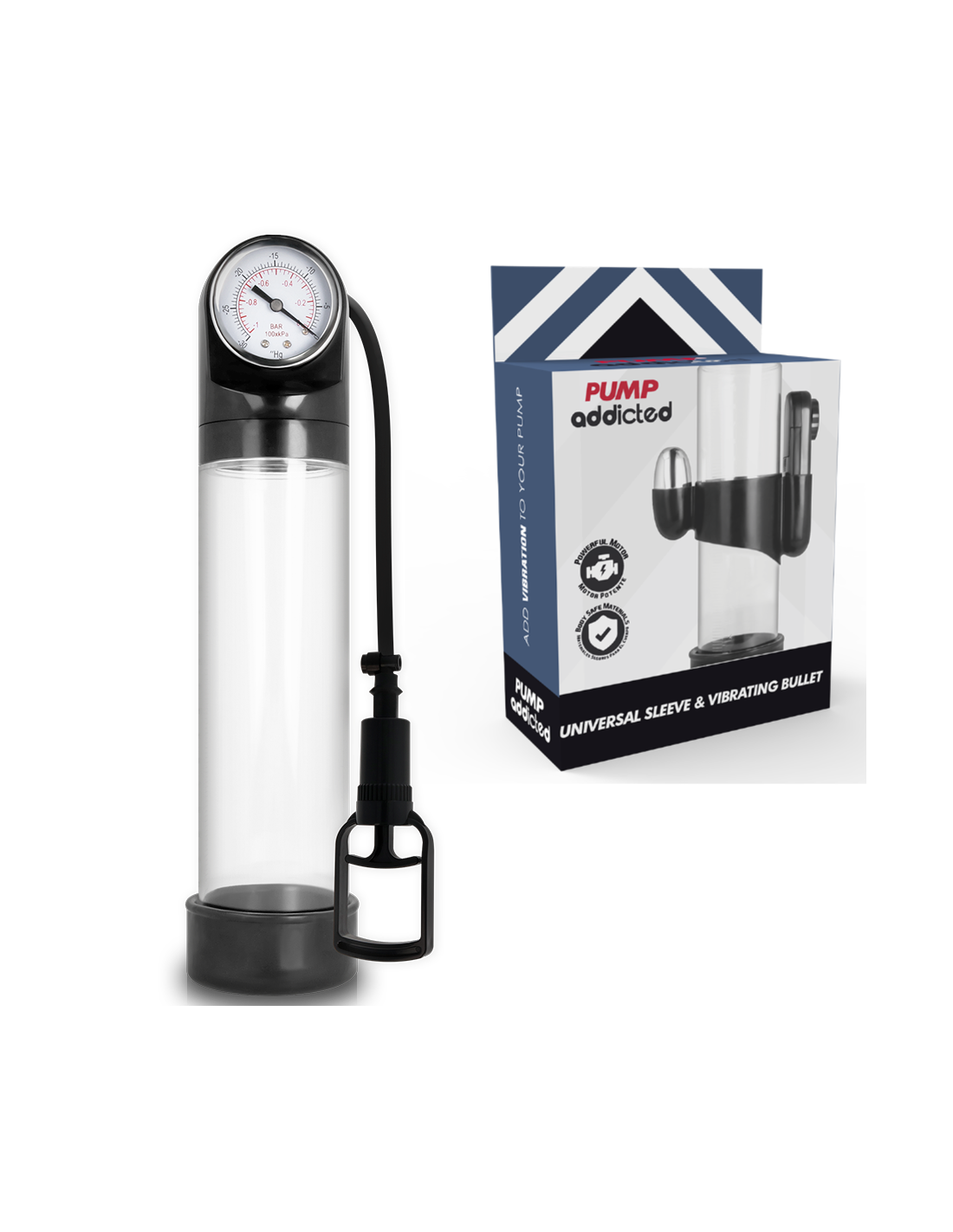 Non finisce qui: alcuni modelli della serie Pump possono essere abbinati anche alla manica masturbatrice, disponibile in due misure. Questo accessorio trasforma il tuo Pump Addicted preferito in un vero e proprio masturbatore e, grazie all’effetto sottovuoto che moltiplica visivamente la dimensione del pene fino a 5 volte, regala un impatto visivo davvero attraente durante l’uso.