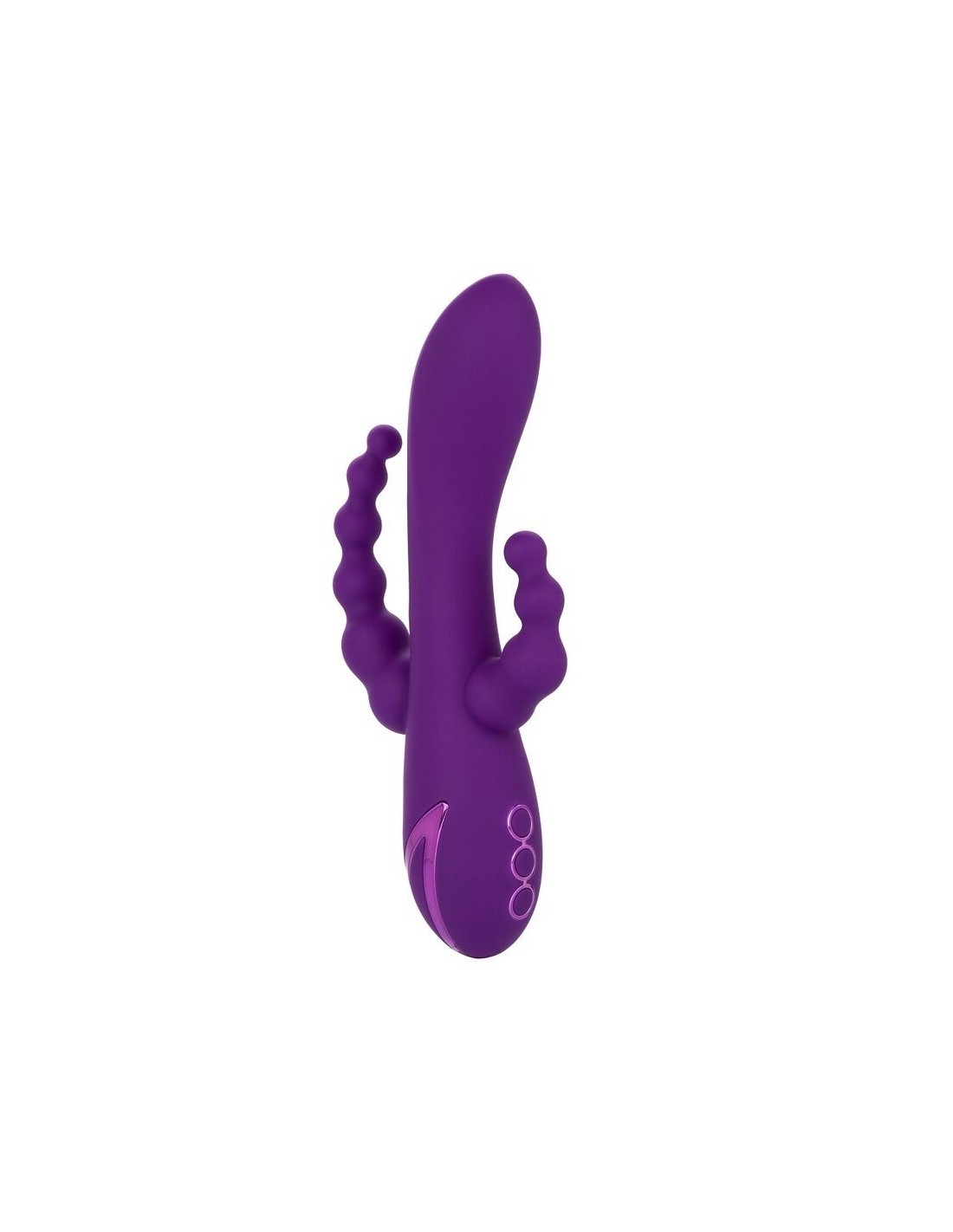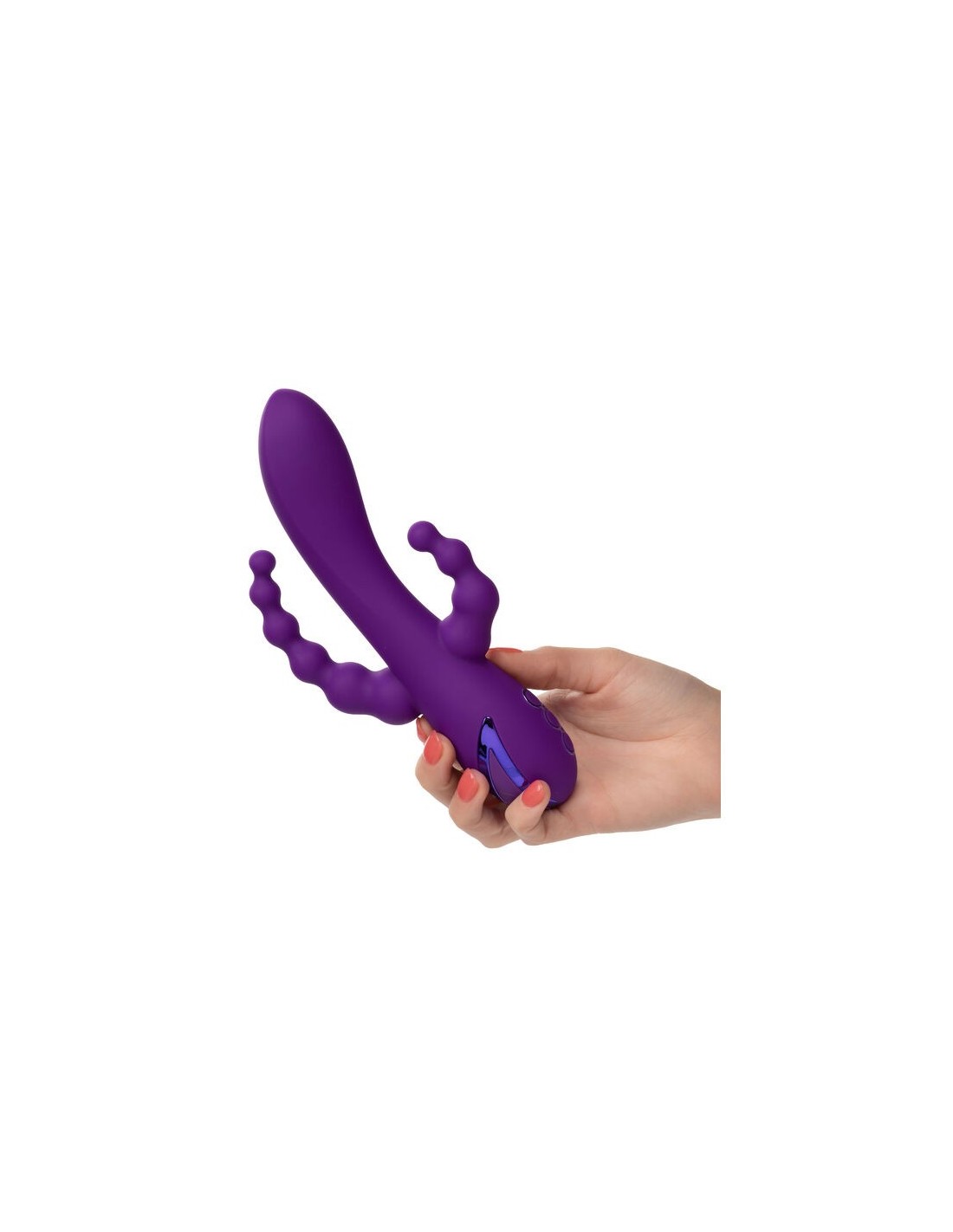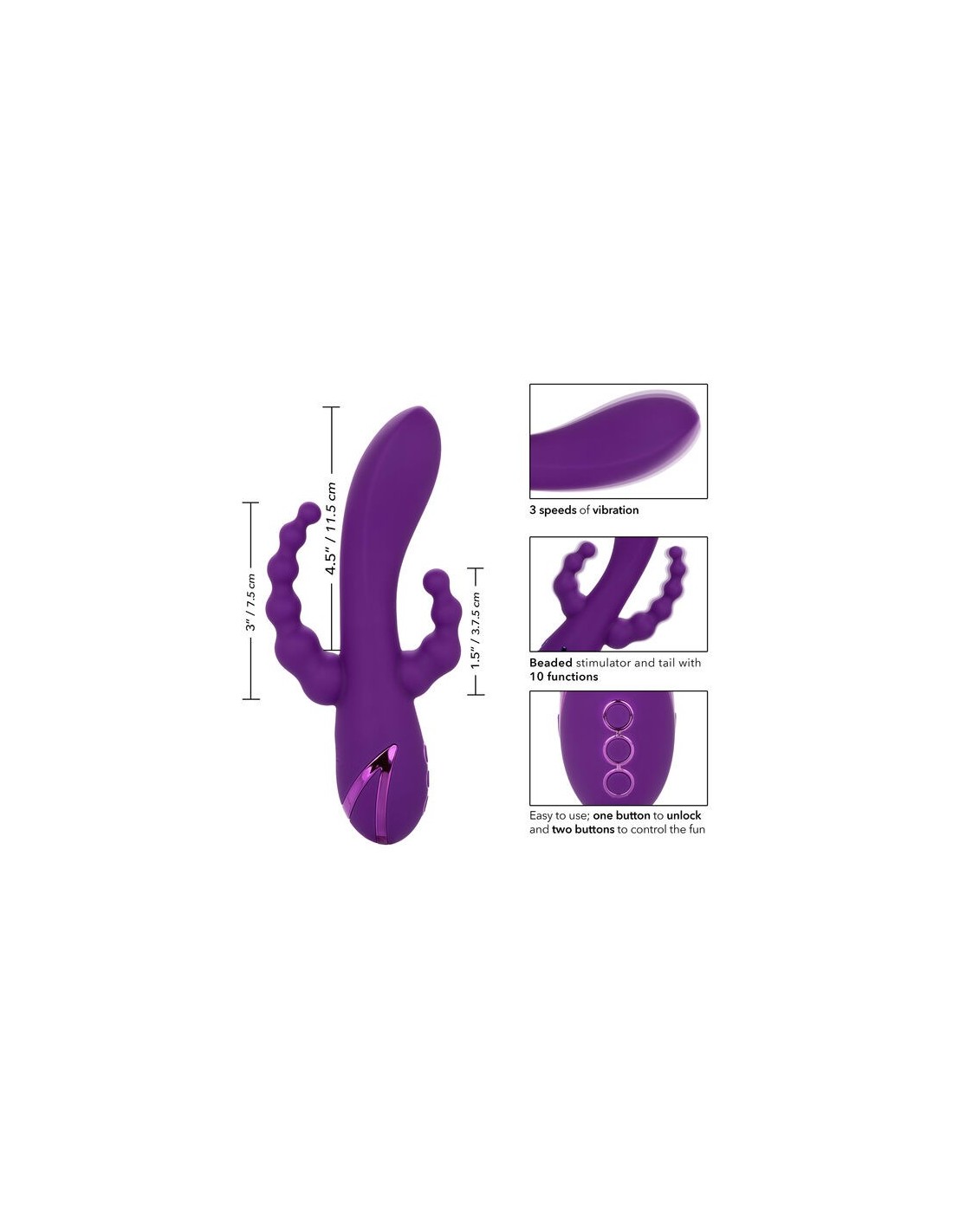 - Potente massaggiatore a tripla azione con vibrazione su asta, stimolatore e coda