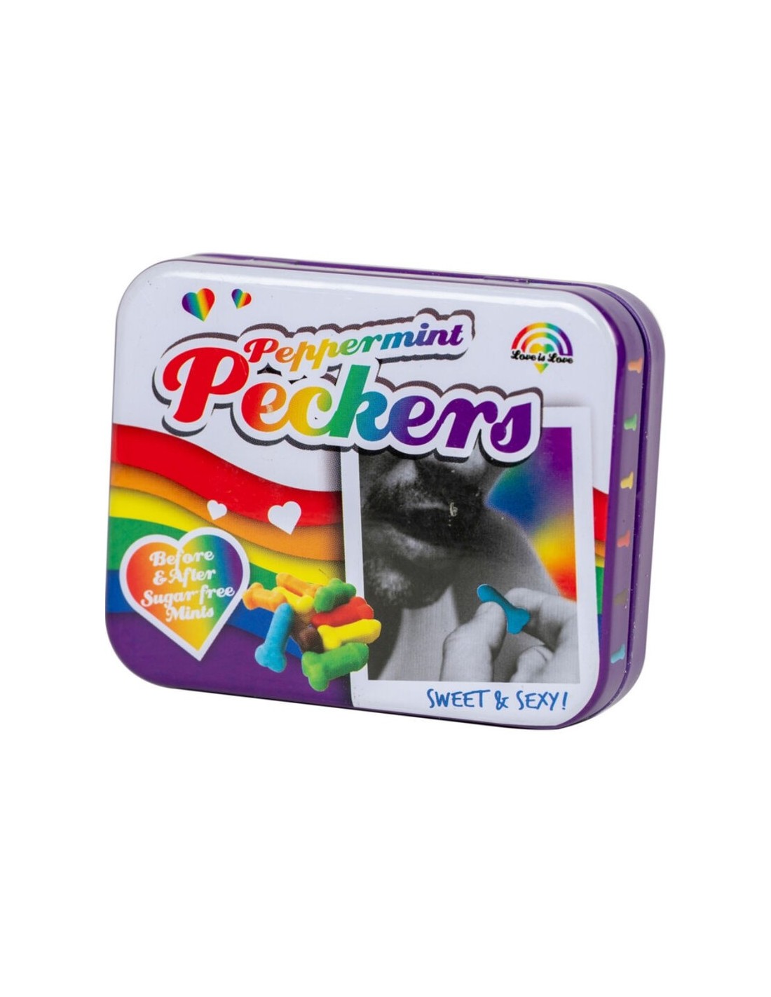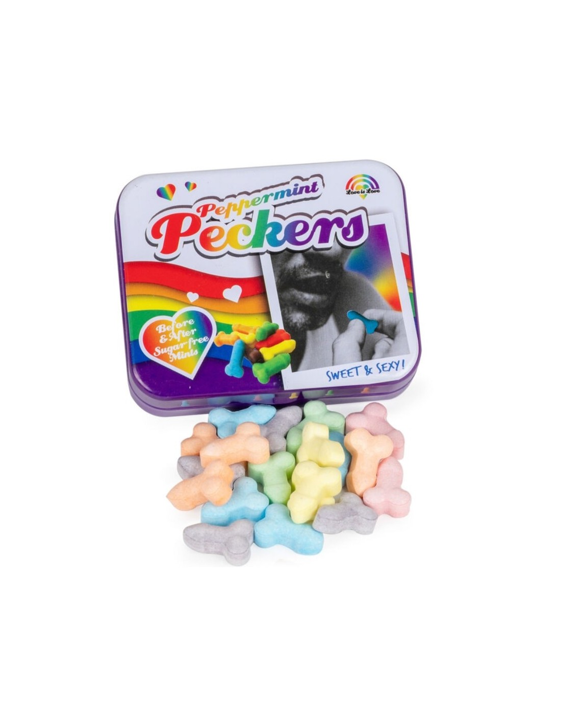 Un mix di soddisfazione e freschezza garantita! La confezione contiene 30 g di mentine multicolori a forma di pene, conservate in una elegante scatola di latta goffrata di alta qualità.