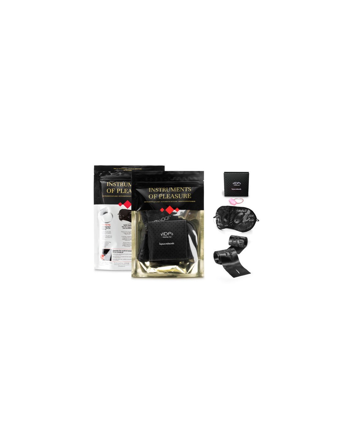 - Contenuto: Anello vibrante, manette in raso, maschera in raso.