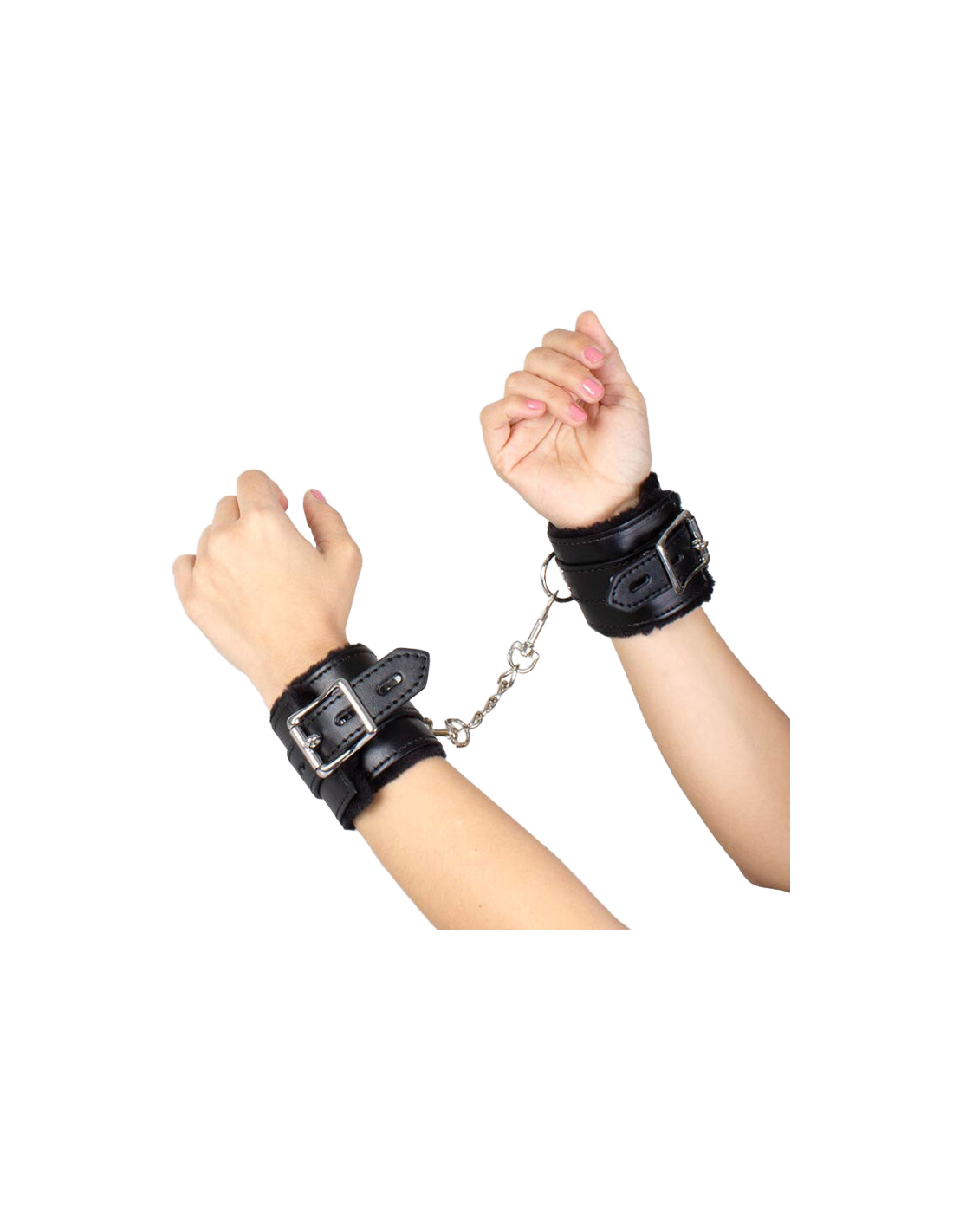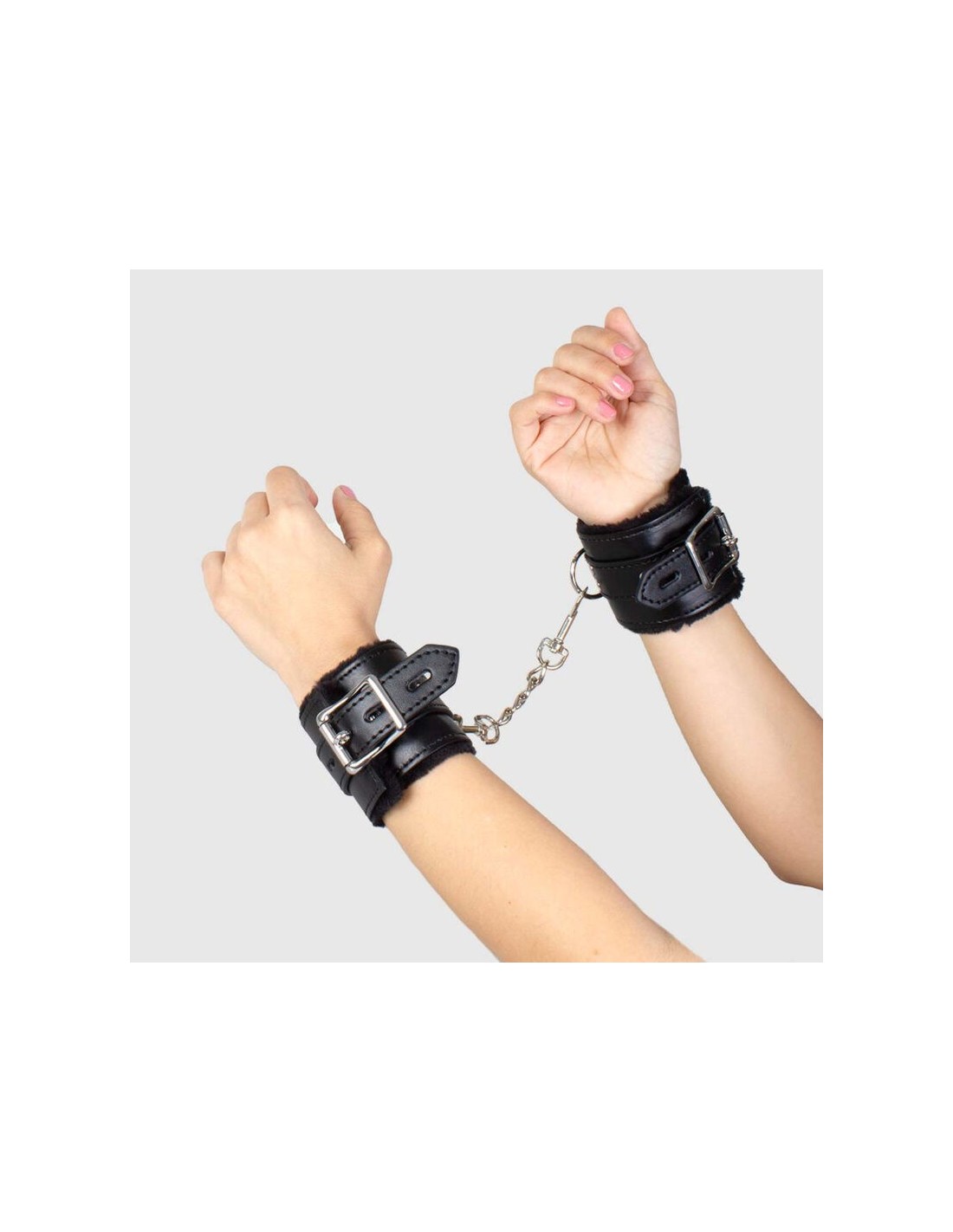 Questi polsini leggermente imbottiti uniscono l'eleganza dell'ecopelle a catene argentate, donando un tocco di stile e versatilità alle tue esperienze bondage. Rivestiti internamente in morbida felpa, sono incredibilmente sensuali ma al tempo stesso confortevoli e non intimidatori. Le robuste fibbie assicurano una chiusura stabile e regolabile in diverse posizioni, mentre il moschettone a sgancio rapido garantisce la massima sicurezza. Lasciati avvolgere dalla passione e dalla complicità con il tuo partner come mai prima d'ora!