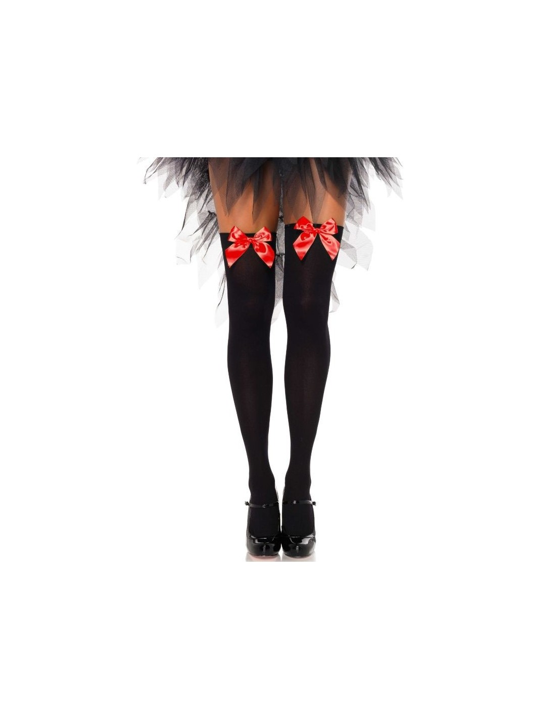 LEG AVENUE - CALZAMAGLIA IN NYLON NERO CON FIOCCO ROSSO TAGLIA UNICA