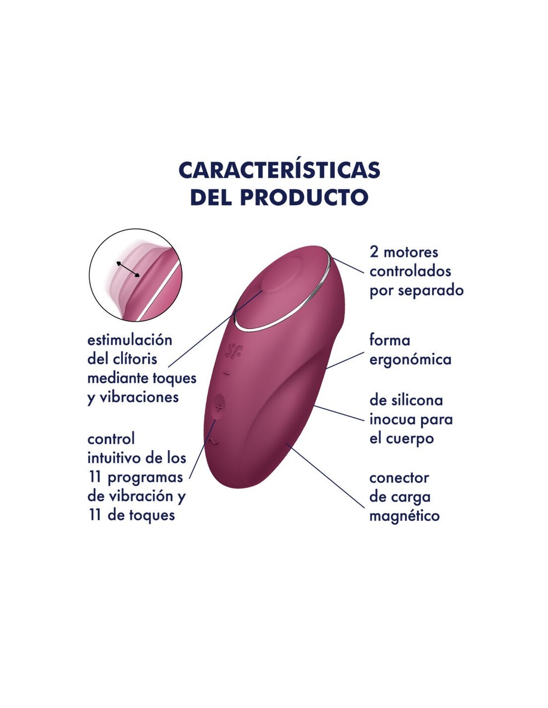 Cosa rende speciale questo dispositivo? Il Satisfyer Tap Climax 1 è un vibratore lay-on elegante e funzionale, progettato per offrire due tipi di stimolazione per momenti davvero indimenticabili. Realizzato in silicone sicuro per il corpo e dalla forma ergonomica, è morbido al tatto e si adatta perfettamente alla mano e alle zone più sensibili.