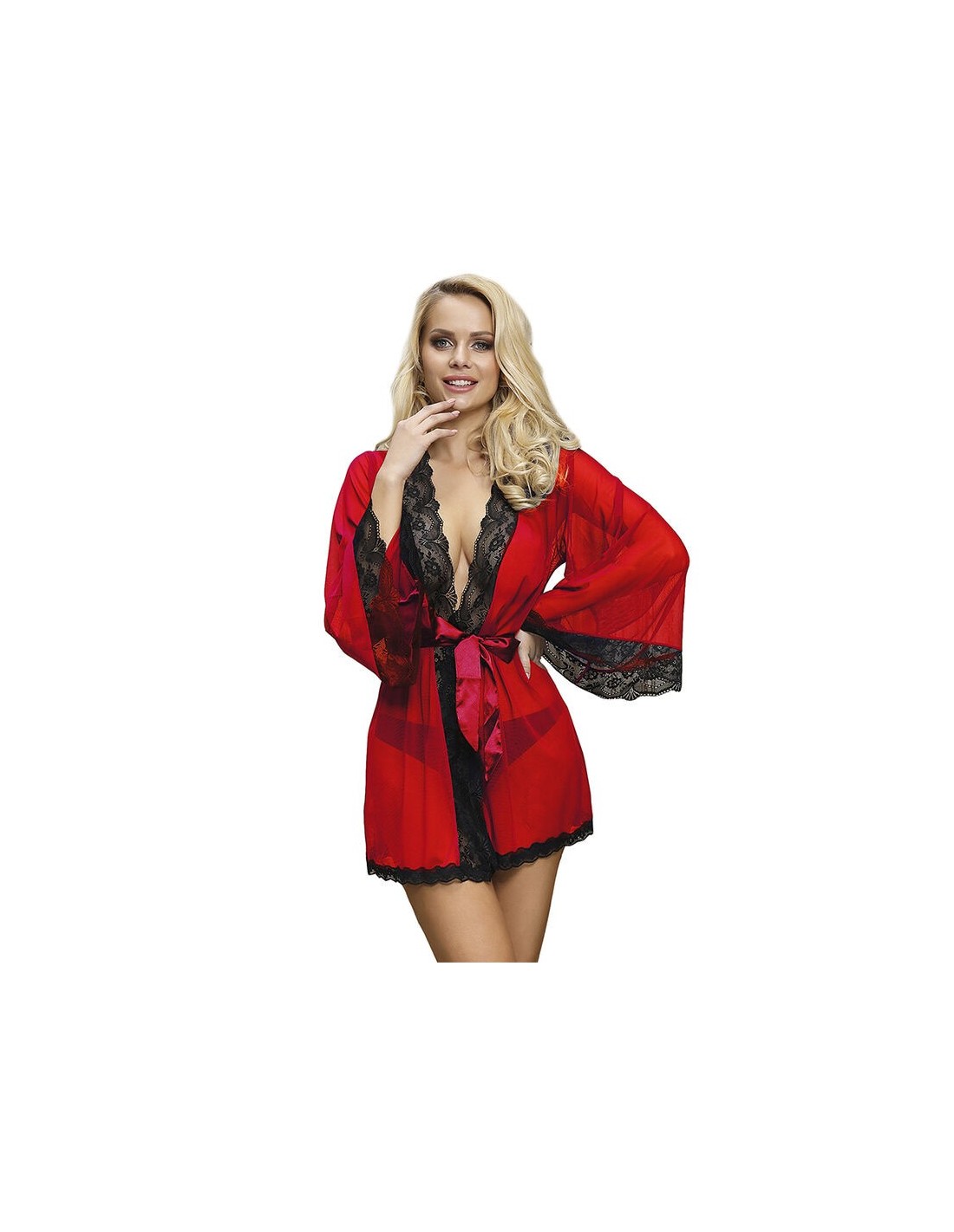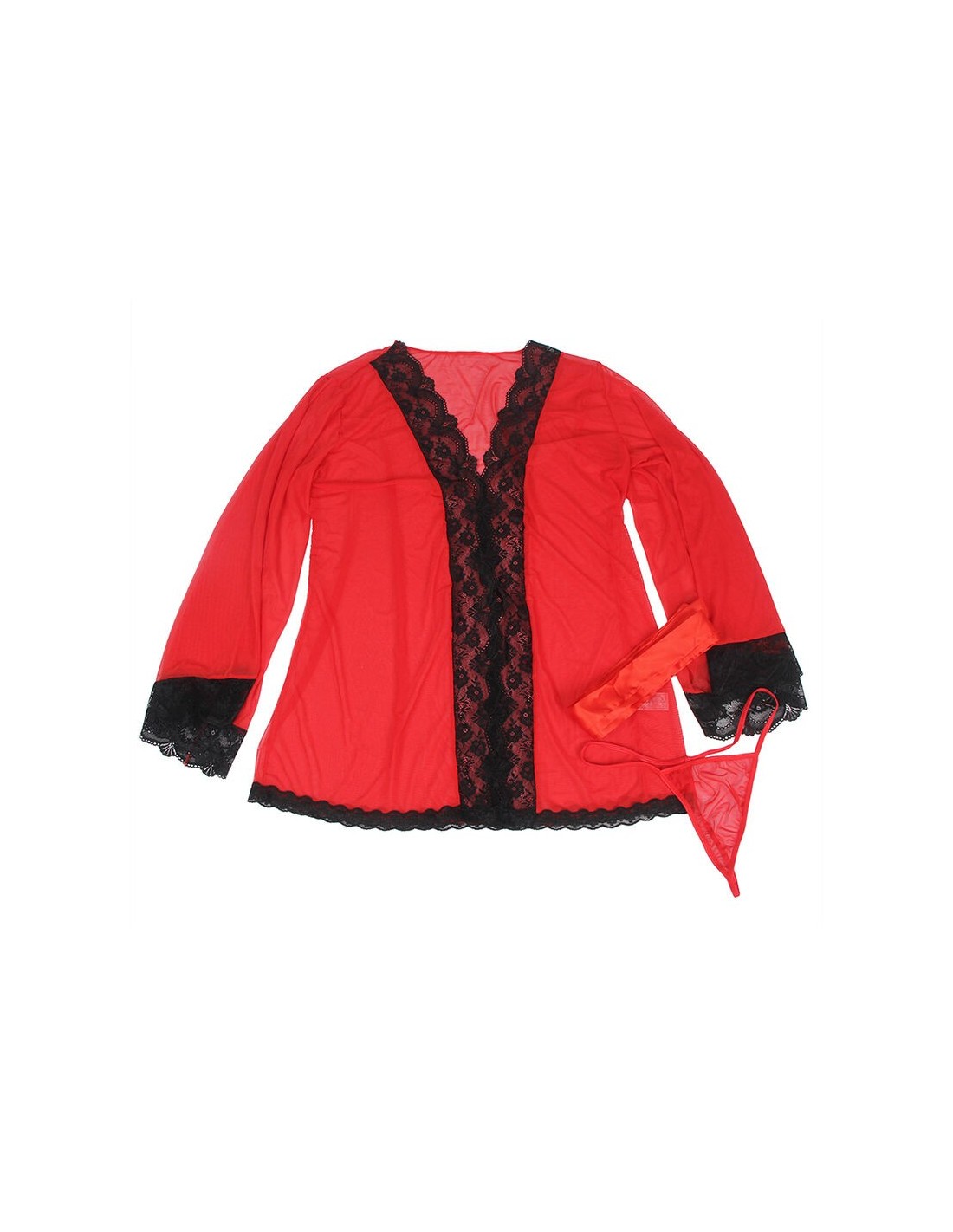 SUBBLIME - VESTAGLIA IN TESSUTO TRASPARENTE CON DETTAGLI IN PIZZO ROSSO L/XL