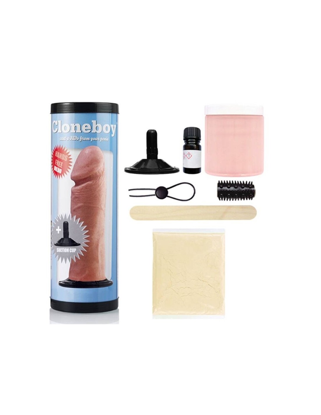 Il kit di aspirazione per dildo Cloneboy Cast Your Own contiene tutto il necessario per creare una copia in gomma siliconica del tuo pene, da solo o insieme al tuo partner. Cloneboy non utilizza cerotti che possono irritare la pelle, ma un materiale modellante a base di alghe naturali, testato dal punto di vista medico.