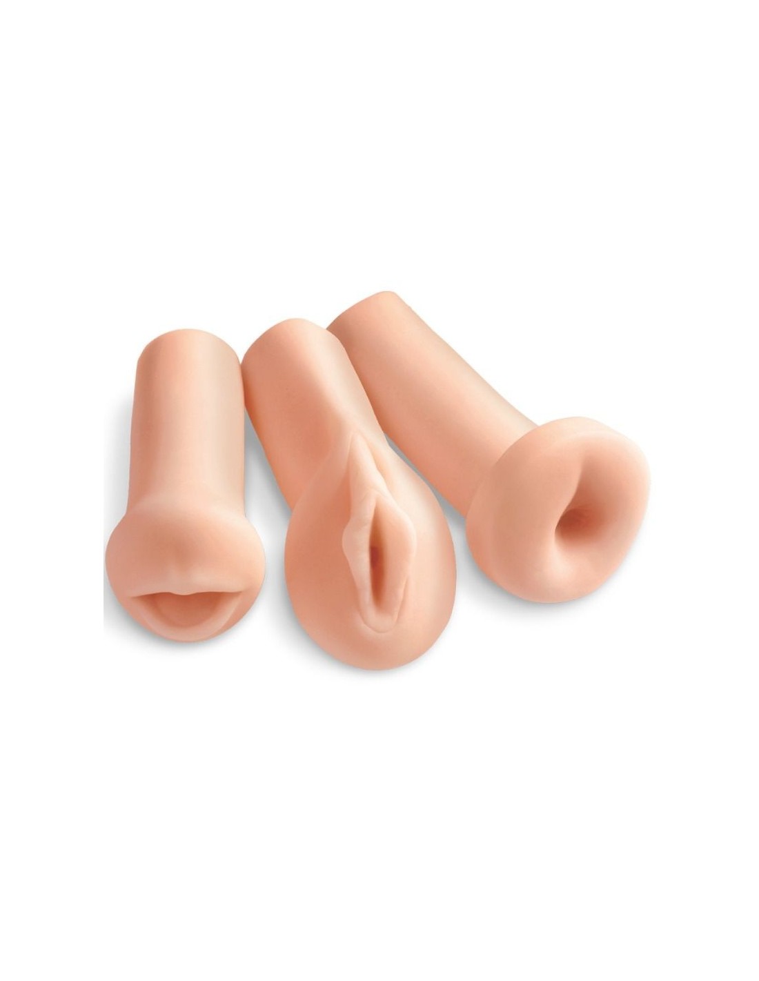 Realizzati in morbido materiale Fanta Flesh, questi masturbatori regalano una sensazione piacevole al tatto. Puoi scegliere tra la bocca, la vagina o l'ano, oppure divertirti con tutti e tre contemporaneamente. Indossali sul tuo pene e ti sembrerà di vivere un'esperienza ancora più reale... o addirittura migliore!
