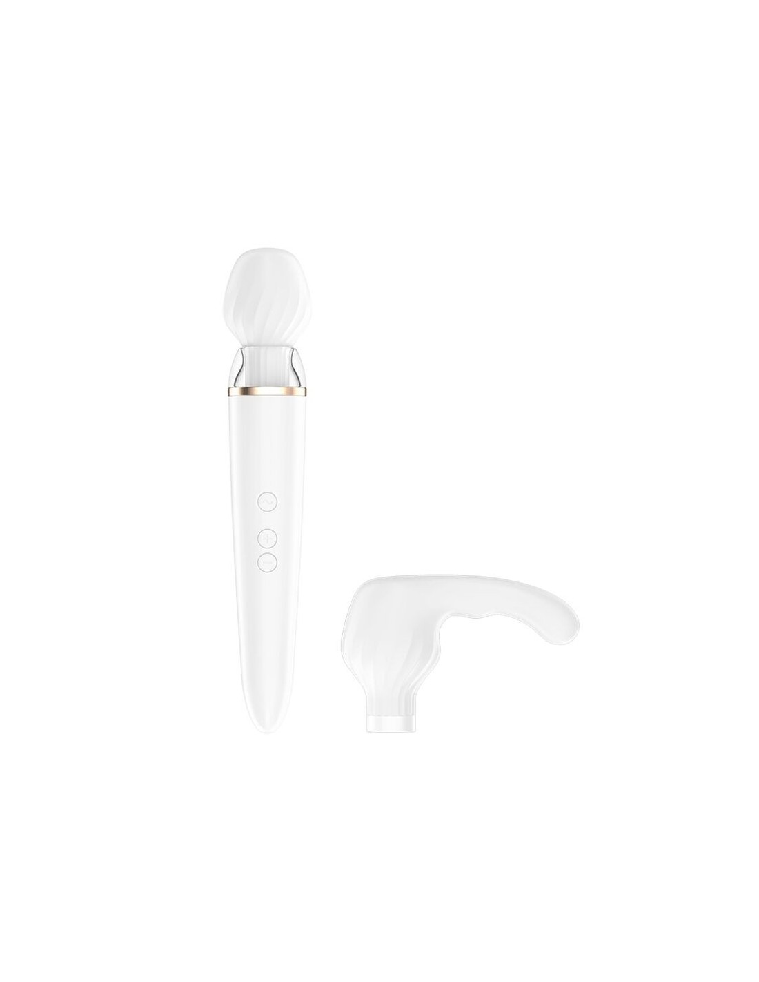Rilassati profondamente con il Satisfyer Double Wand-er: un elegante massaggiatore bianco dotato di due accessori intercambiabili che lo rendono incredibilmente versatile. Puoi trasformare il classico massaggiatore in un vibratore per il punto G o il punto A grazie agli accessori inclusi. La sua imponente dimensione XXL permette un utilizzo semplice e preciso, raggiungendo facilmente tutte le zone e le curve che desiderano relax e stimolazione. La superficie in silicone morbido e delicato coccola la pelle con una piacevole sensazione vellutata. Essendo impermeabile (IPX7), puoi usarlo in doccia o nella vasca da bagno e pulirlo rapidamente con acqua tiepida e sapone neutro. La batteria integrata si ricarica comodamente tramite il cavo USB magnetico incluso.
