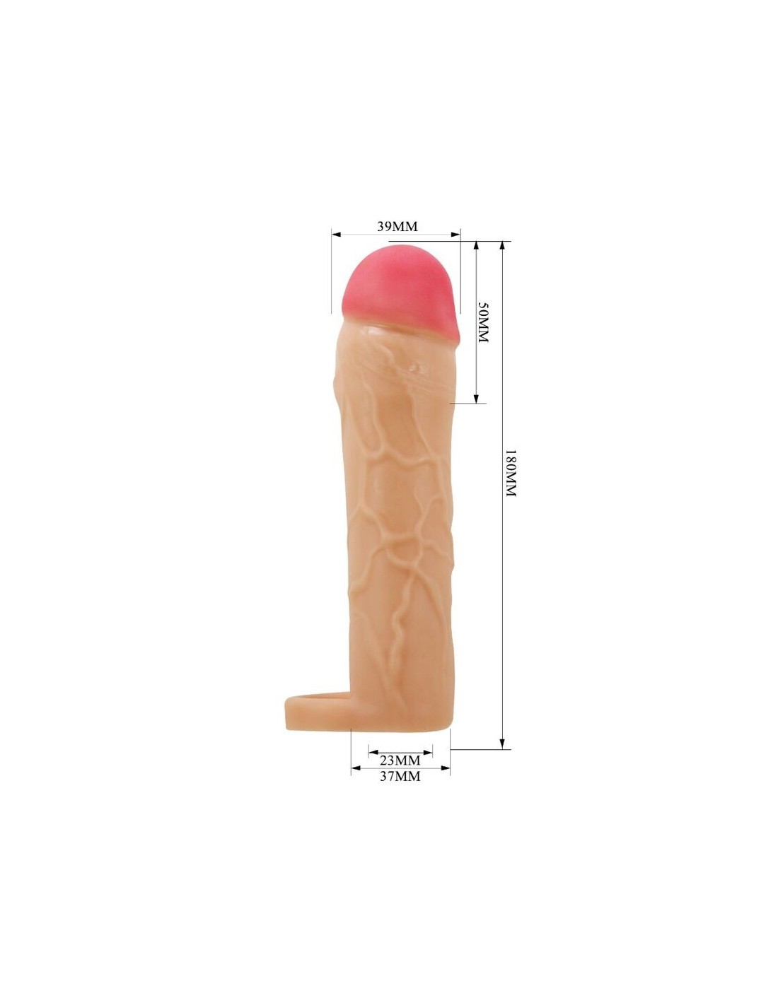 Questa custodia è realizzata in silicone liquido dalla texture simile alla pelle, per offrire una sensazione estremamente realistica. Il design è curato nei minimi dettagli per un aspetto naturale e autentico. Il manicotto, pensato come un’estensione del pene, si adatta comodamente all’erezione grazie a uno stelo cavo e a un anello per testicoli, che garantiscono una presa sicura e stabile durante l’uso. Le pareti spesse e i nodi in rilievo aumentano la stimolazione ad ogni movimento, rendendo l’esperienza ancora più intensa.