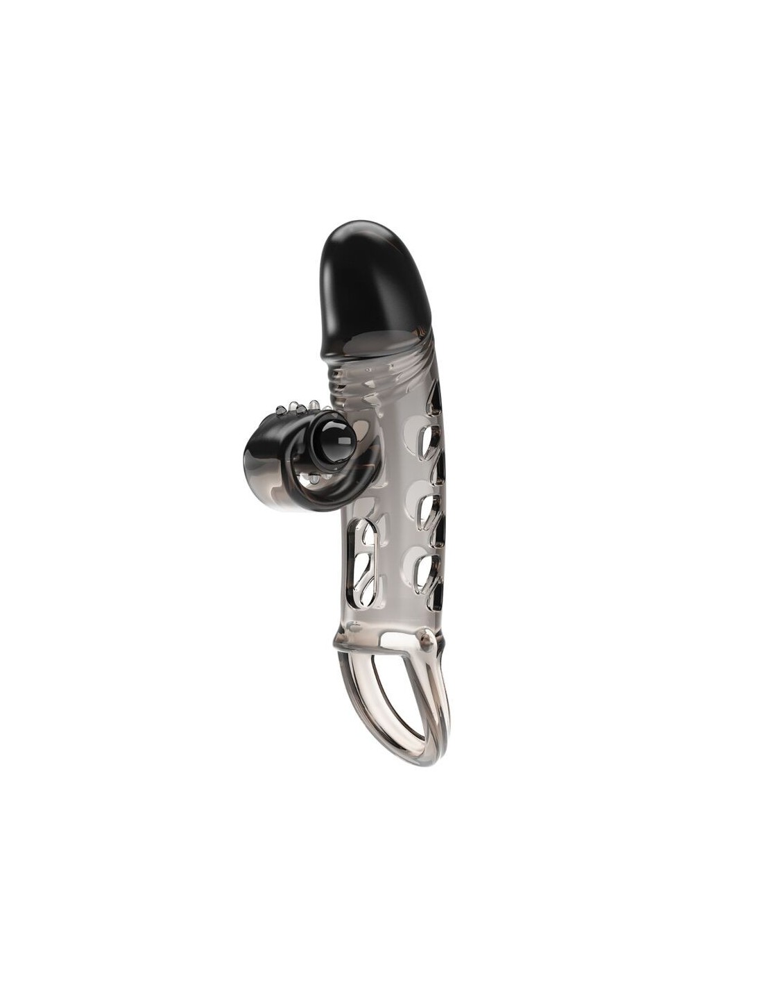 La base è dotata di un anello che avvolge la base dei testicoli, mantenendo l’estensore saldamente in posizione e prolungando l’erezione.