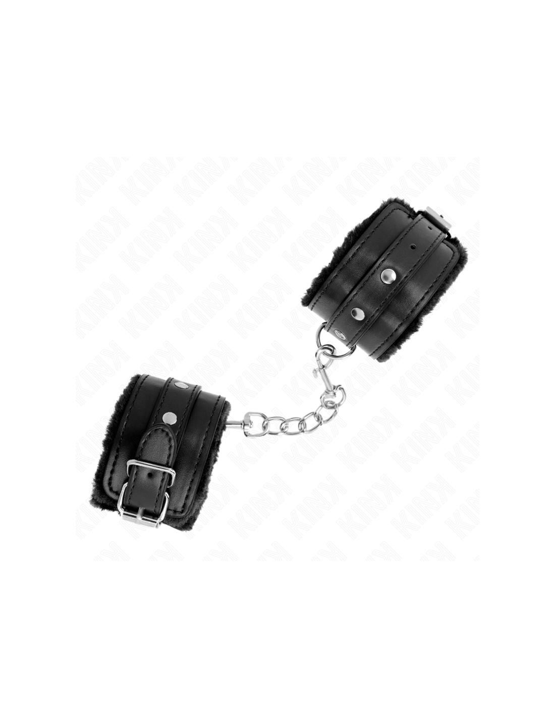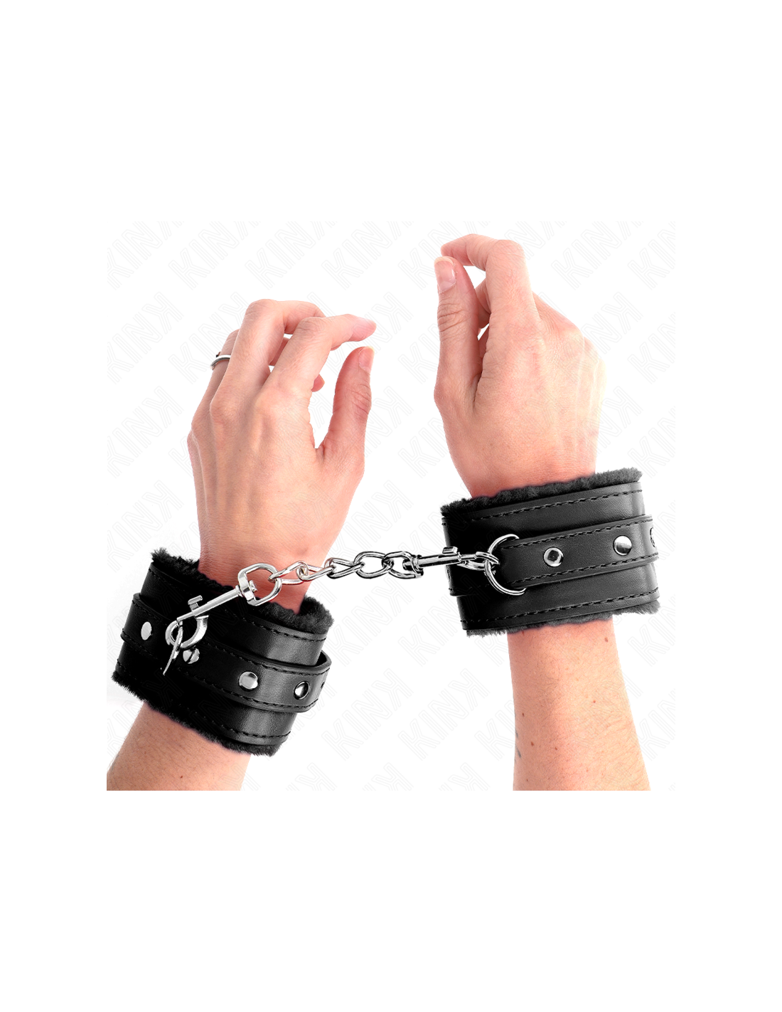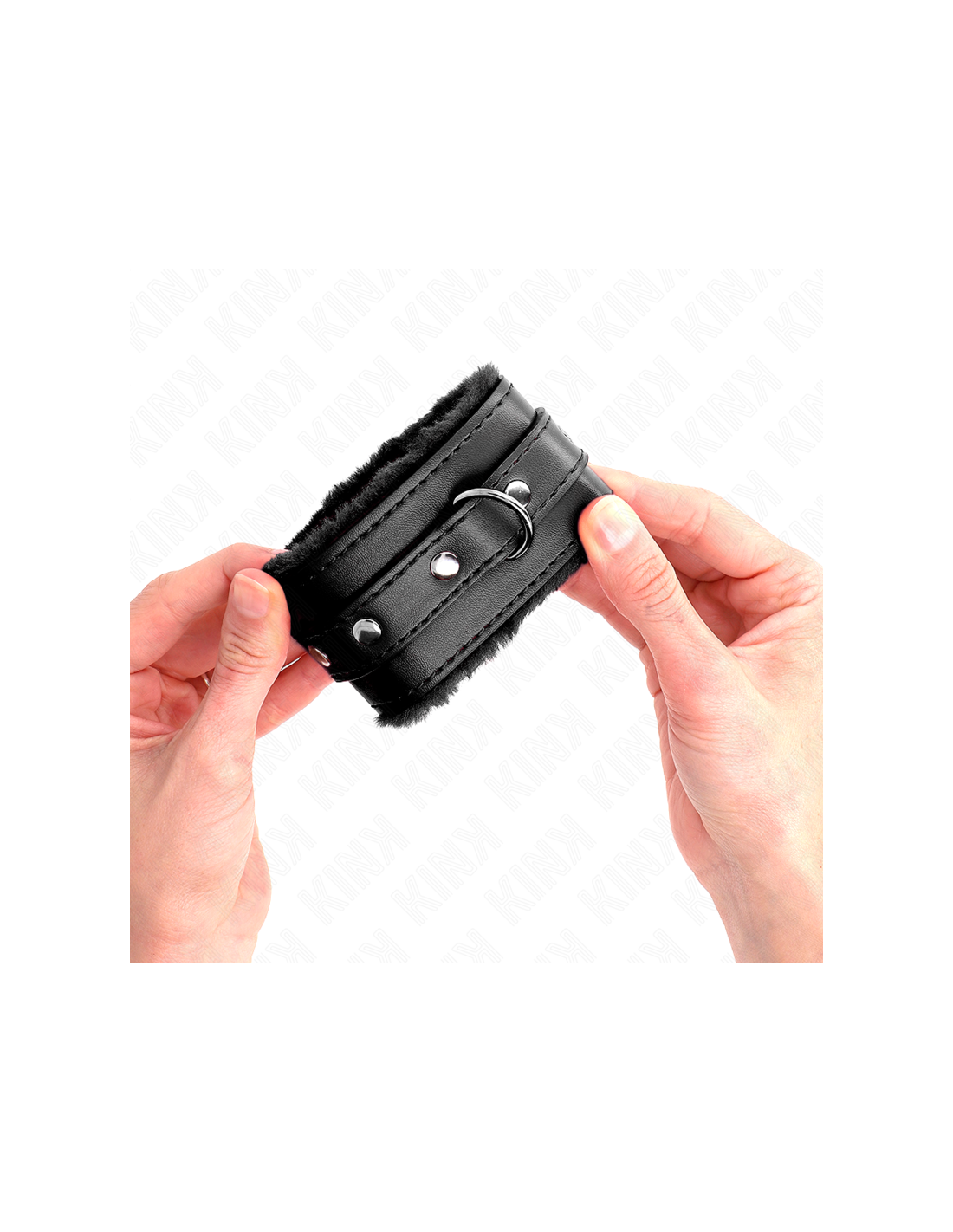 KINK - RESISTENZA DA POLSO PREMIUM FODERATA IN PELLICCIA NERA CON CINTURA NERA REGOLABILE 17-29 CM X 6 CM