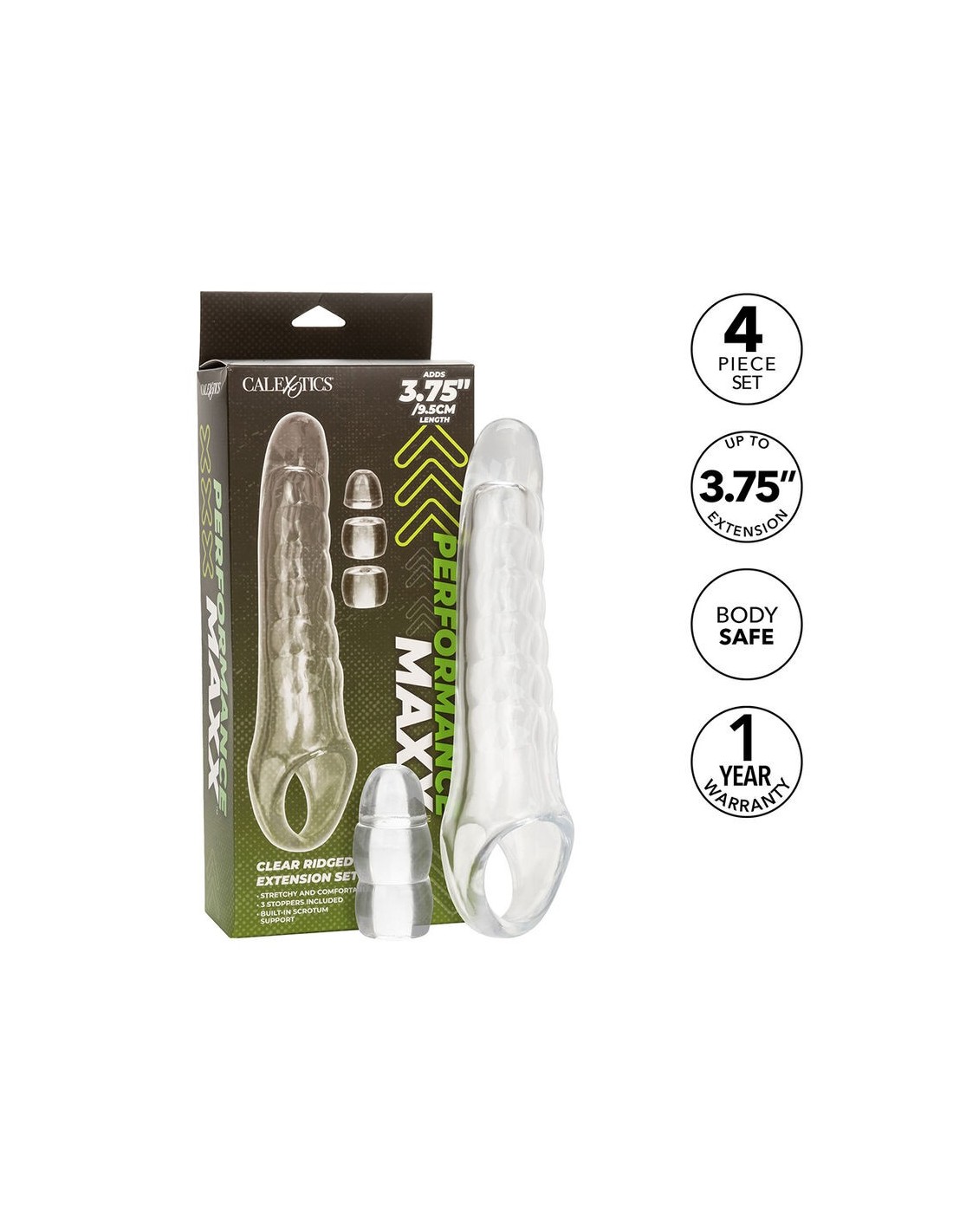 Il kit di estensione trasparente Performance Maxx trasforma gli incontri intimi, aumentandone sia la lunghezza che la circonferenza per un'esperienza ancora più appagante.