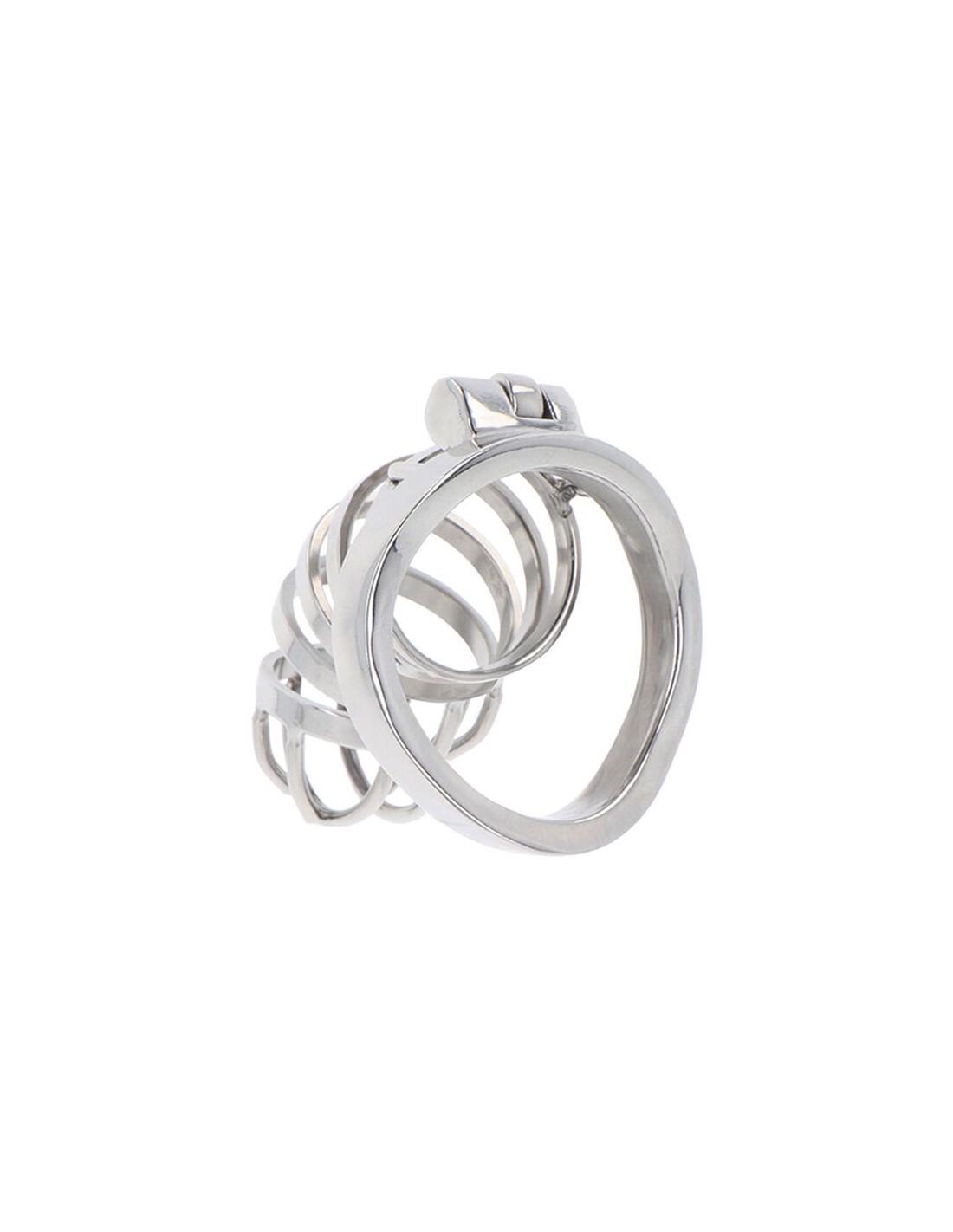 La gabbia di castità in metallo offre un controllo preciso e totale su erezioni e orgasmi.