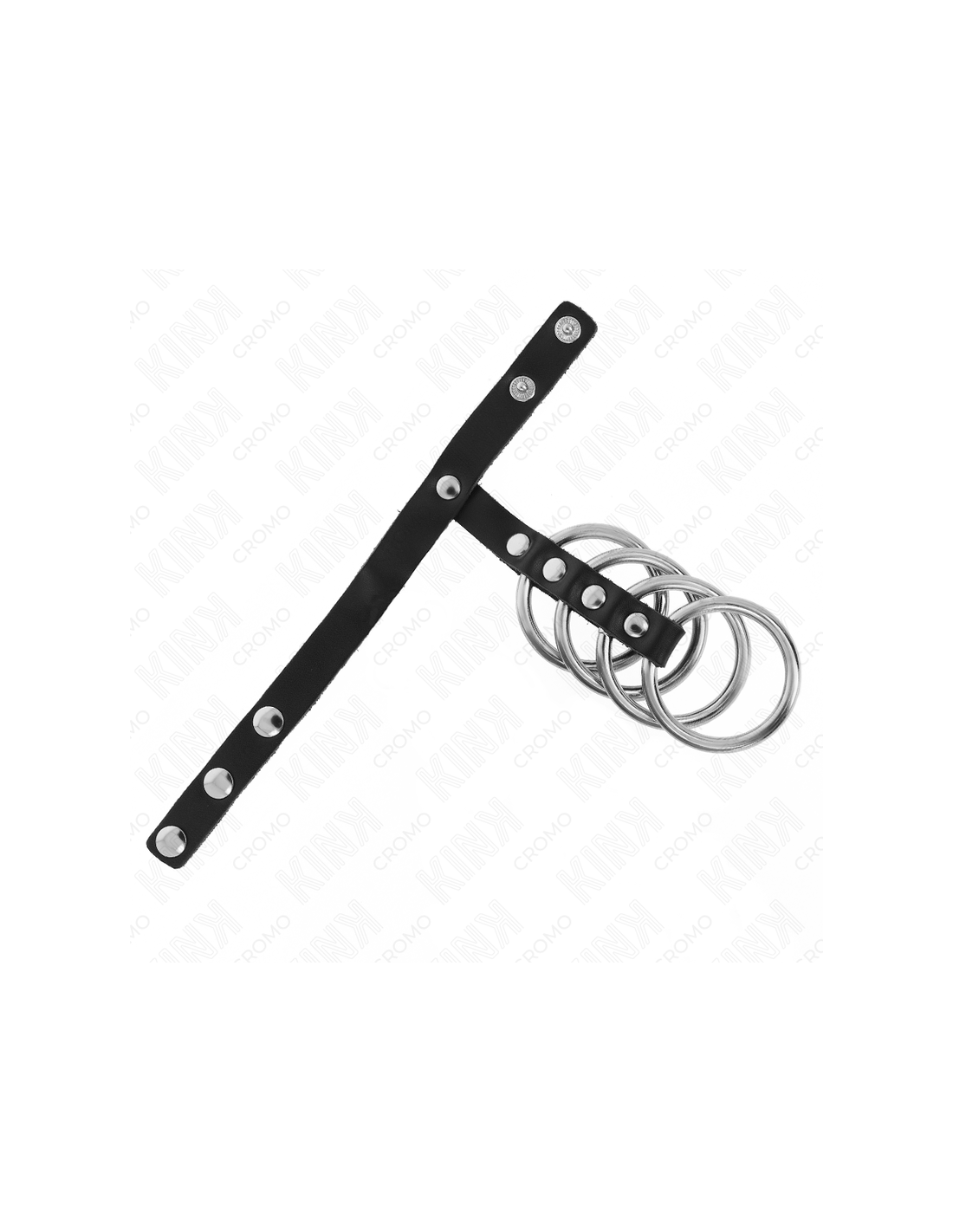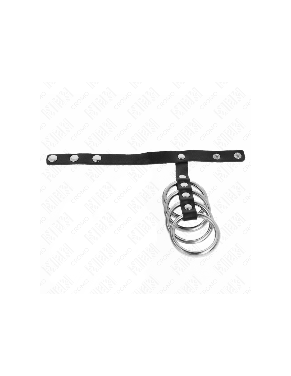 KINK - 4 ANELLI PER PENE IN METALLO DA 3,8 CM COLLEGATI CON CINTURINO IN PELLE DA 22 X 1,5 CM E CHIUSURA A PRESSIONE
