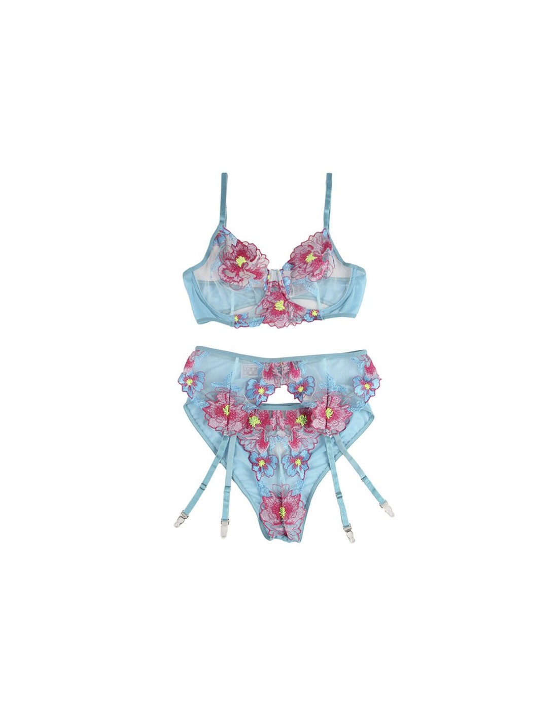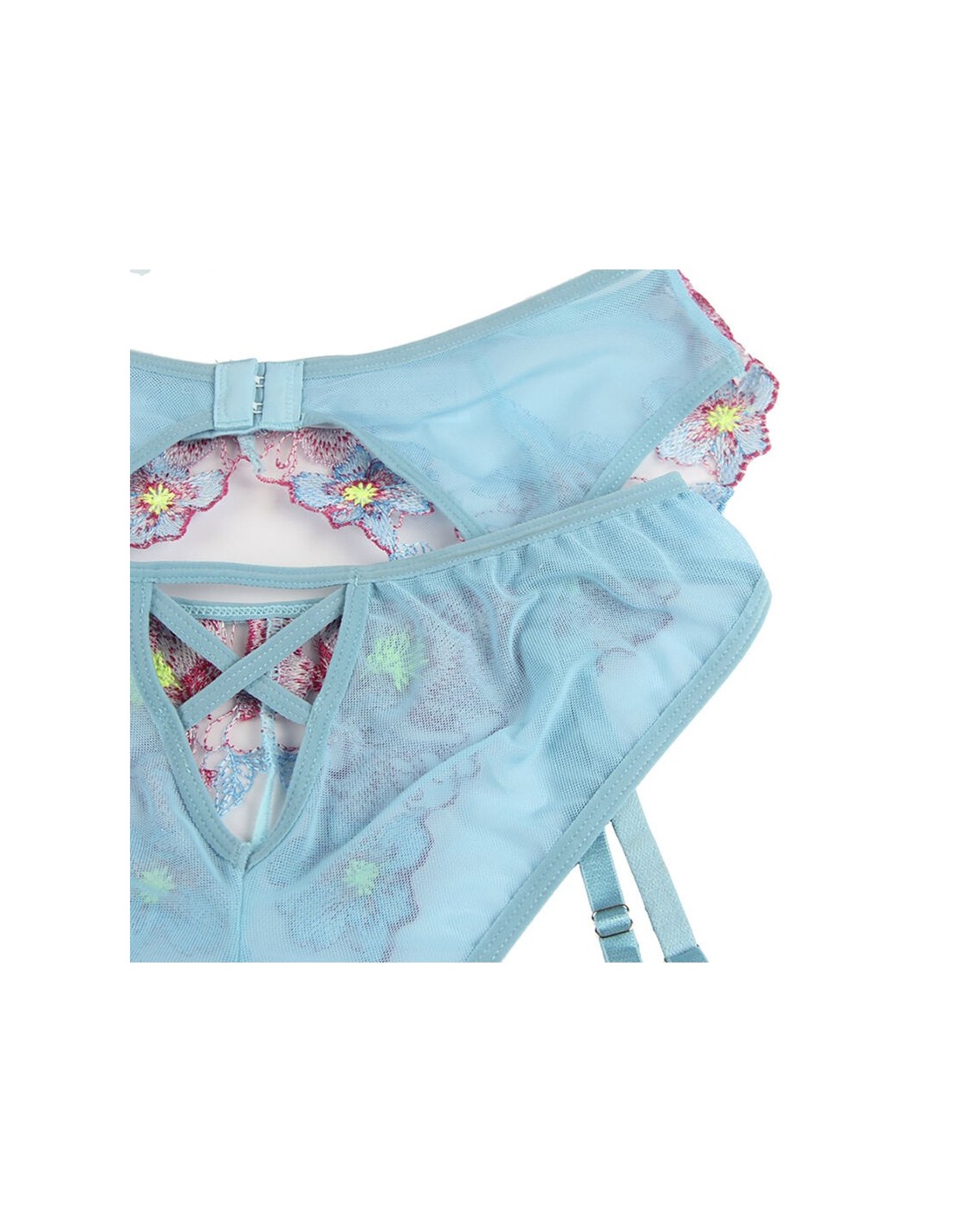 SUBBLIME - 954109 REGGISENO + SLIP CON CINTURA REGGISENO FLOREALE BLU S/M