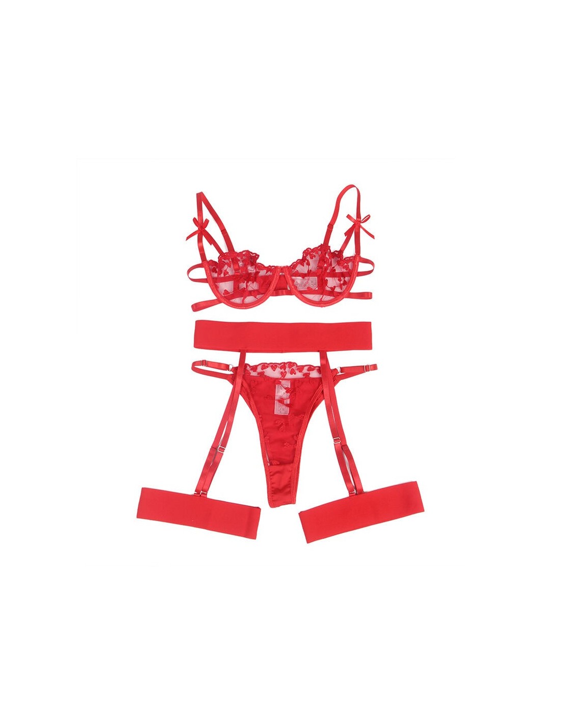 SUBBLIME - 954321 REGGISENO + PERIZOMA + CINTURA CON STAMPA A CUORE ROSSO S/M