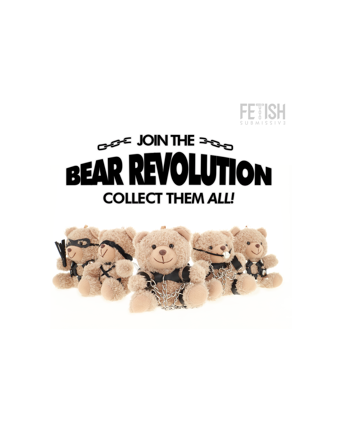 Questi sono gli orsi FETISH SUBMISSIVE, creati per rompere gli schemi con stile e un pizzico di irriverenza. Sei personaggi unici - Yogi, Ted, Fozzie, Bongo, Mishka e Winnie - ognuno con una personalità e un look inconfondibili, che li rendono veri protagonisti di questa imperdibile collezione.