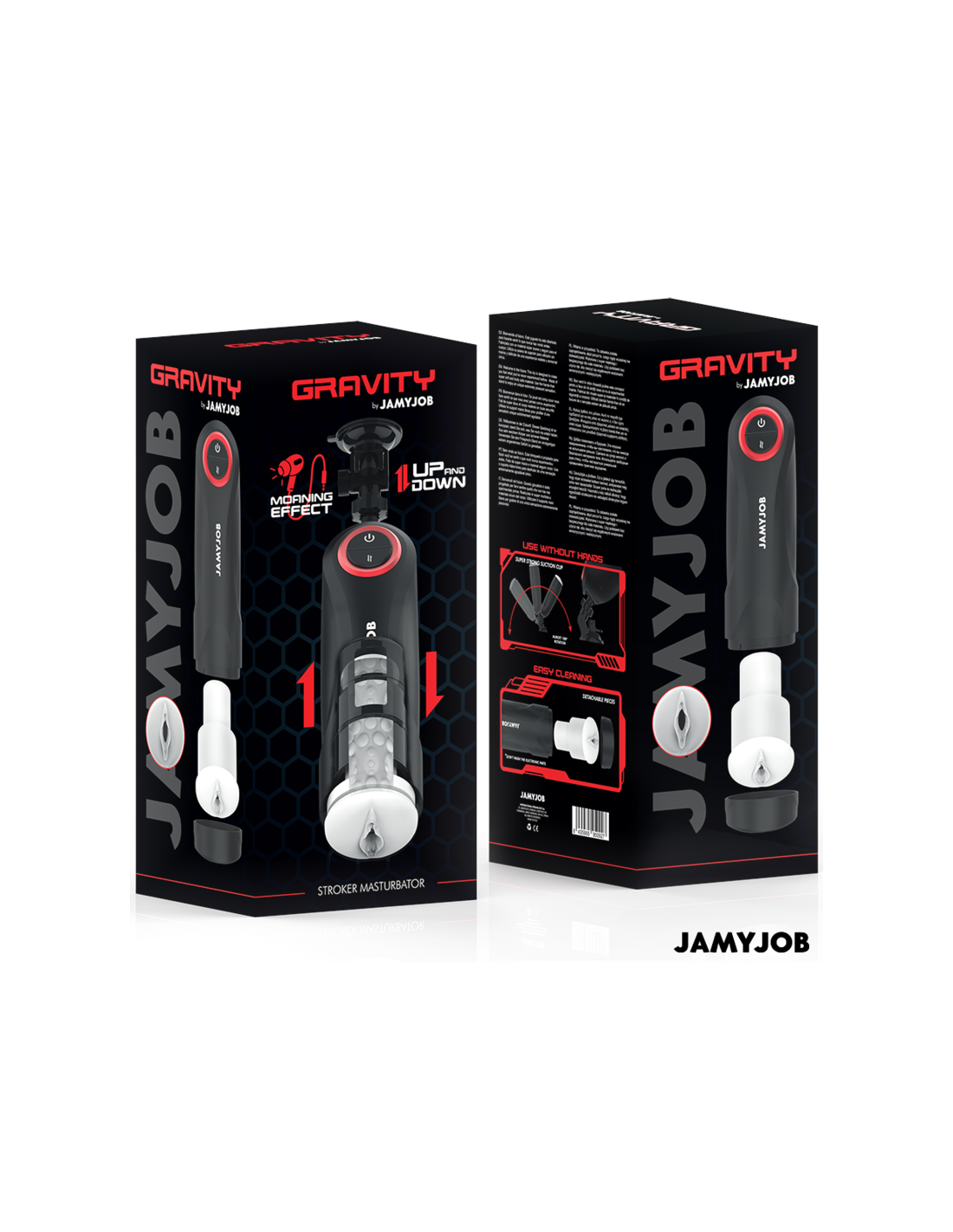 Il masturbatore automatico per uomo GRAVITY del marchio JAMYJOB è un dispositivo all’avanguardia dal design elegante, studiato per regalarti un’esperienza intensa e di alta qualità. Il suo look nero, impreziosito da dettagli rossi, unisce stile e funzionalità in un unico prodotto raffinato.