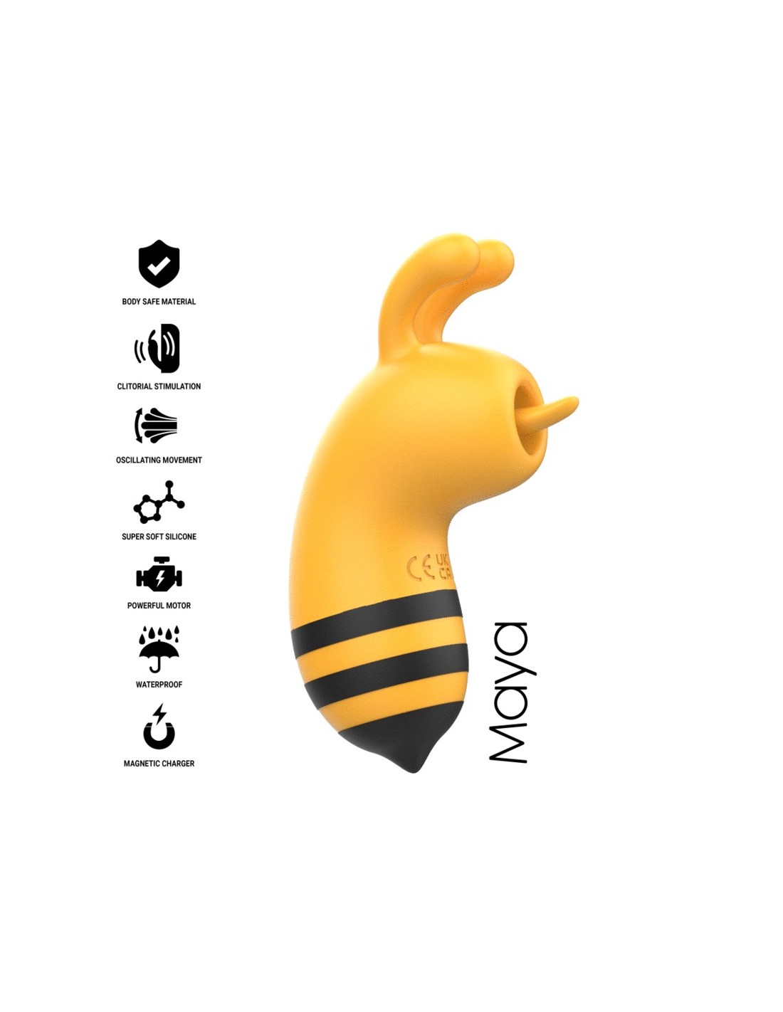 Maya è il nuovo stimolatore clitorideo che unisce un design giocoso a prestazioni potenti, regalando un’esperienza di piacere davvero unica. Il suo colore giallo vibrante, accompagnato da dettagli neri, richiama il dolce battito d’ali di un’ape, ma con vibrazioni intense e precise per una stimolazione profonda e appagante.