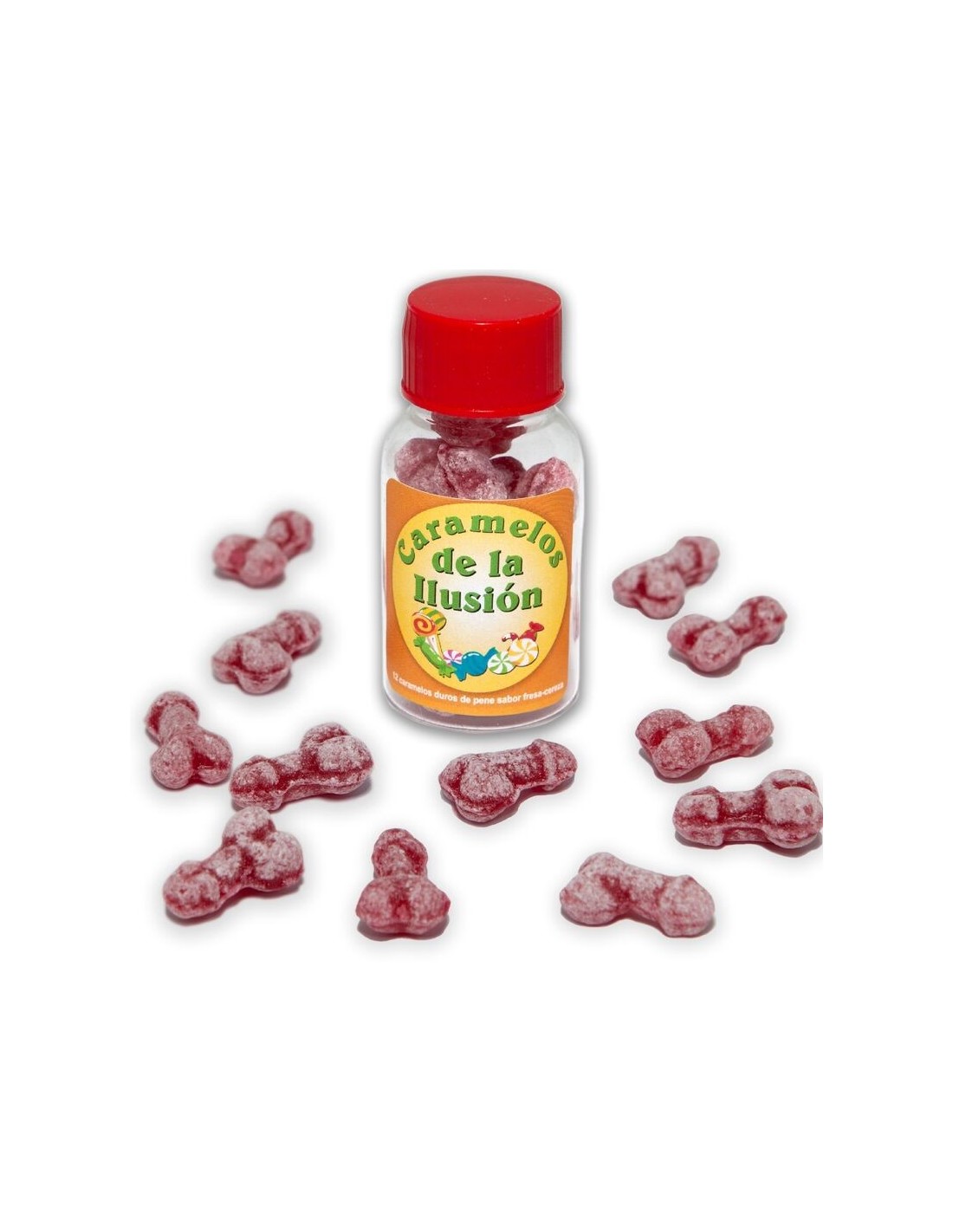 DIABLO PICANTE - 12 CARAMELLE ILLUSIONI A FORMA DI PENE FRAGOLA/CILIEGIA