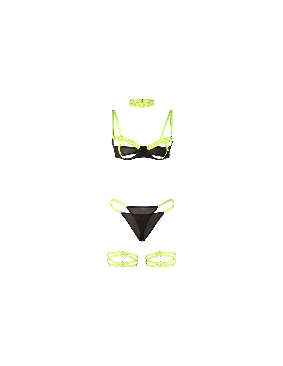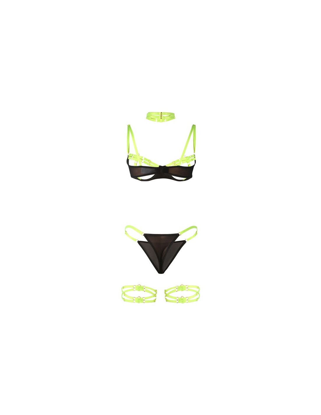 SUBBLIME - 955281 COMPLETO REGGISENO CON COLLANA E DETTAGLI GAMBA VERDE FLUO L/XL