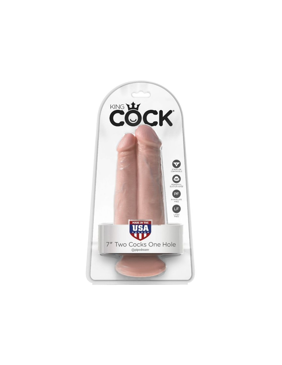King Cock realizza le tue fantasie 2 in 1 con dildo modellati in modo realistico e dettagliato, pensati per offrire un'esperienza intensa e coinvolgente. Realizzato artigianalmente con materiali flessibili e di alta qualità, questo doppio dildo King Cock garantisce una stimolazione profonda e un piacere autentico. La sua potente ventosa permette di fissarlo saldamente su quasi tutte le superfici piane, incluse le imbracature compatibili, per un utilizzo versatile e sicuro.