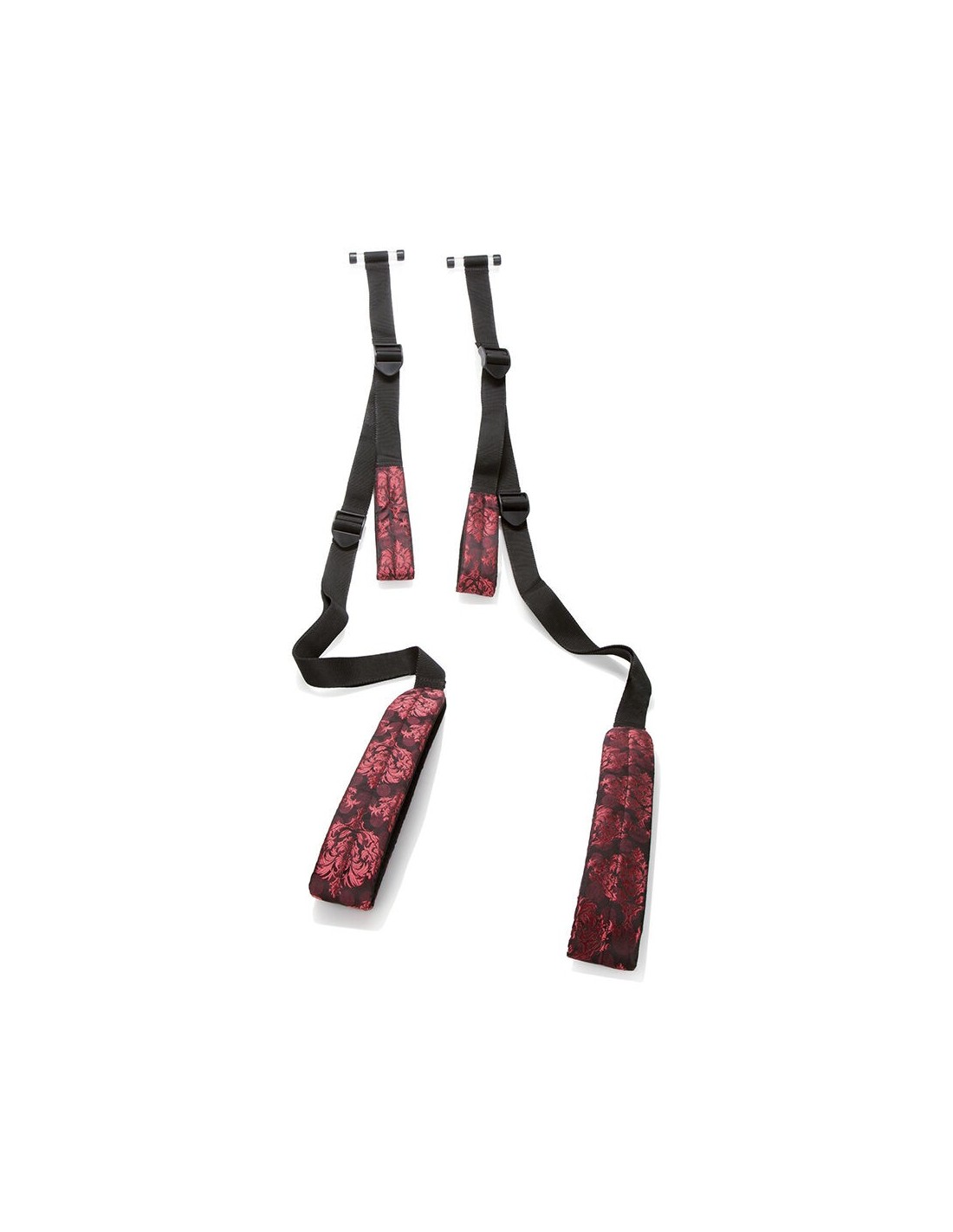 Scopri nuove vette di passione con l'altalena Scandal® Over the Door Swing. Questa imbracatura universale da porta si fissa saldamente su porte di dimensioni standard o più grandi ed è dotata di morbide cinghie imbottite per braccia e cosce, rivestite in un elegante tessuto rosso e nero dal design raffinato. Lascia che il tuo partner prenda il controllo mentre ti dondoli avanti e indietro, con il corpo sollevato e inclinato nella posizione ideale per spinte profonde e intense.